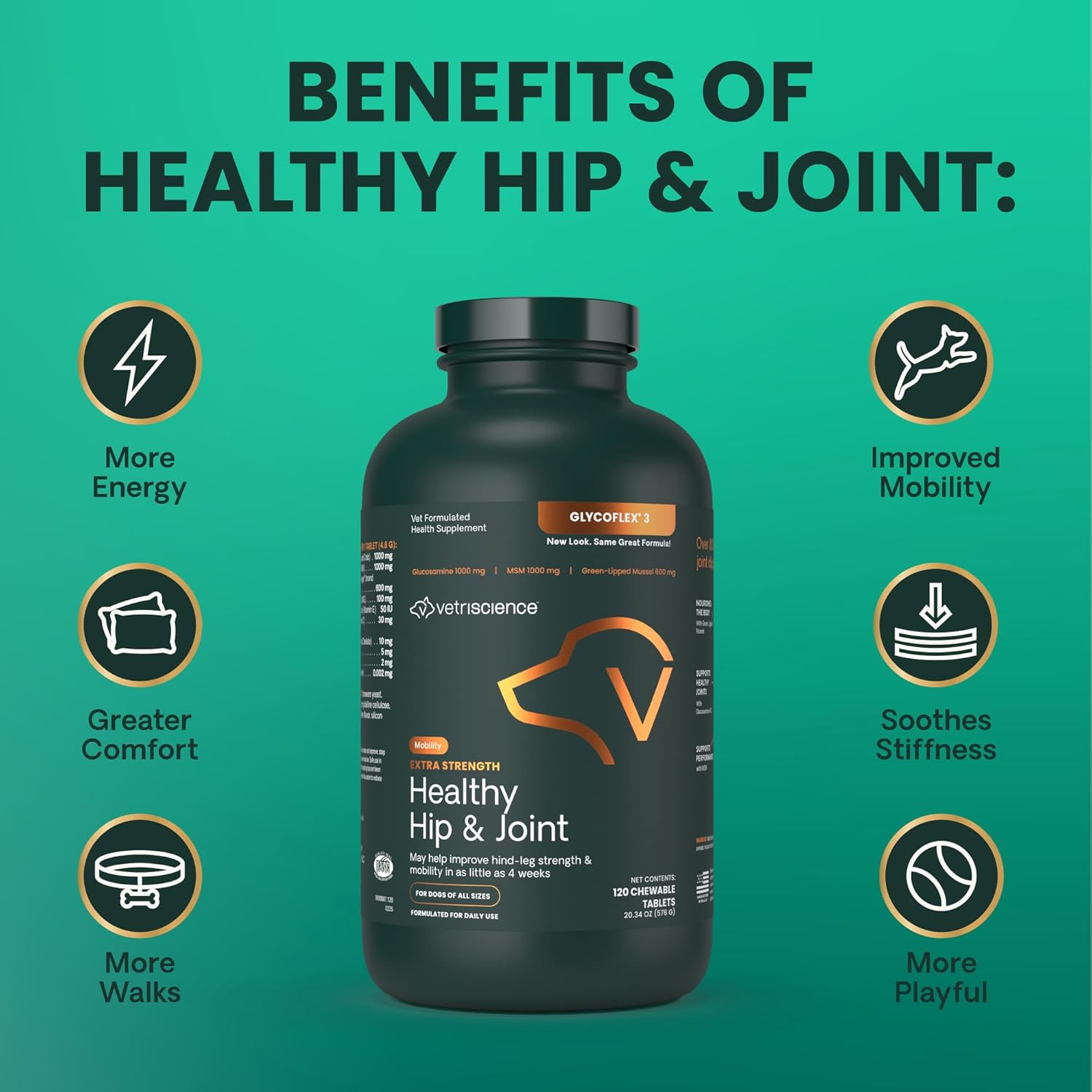 - Maximum strength joint health formula: Our GlycoFlex 3 canine formula combines 10 active ingredients including green lipped mussel, glucosamine for dogs, MSM, DMG, and antioxidants to help improve joint integrity, strength, mobility and function