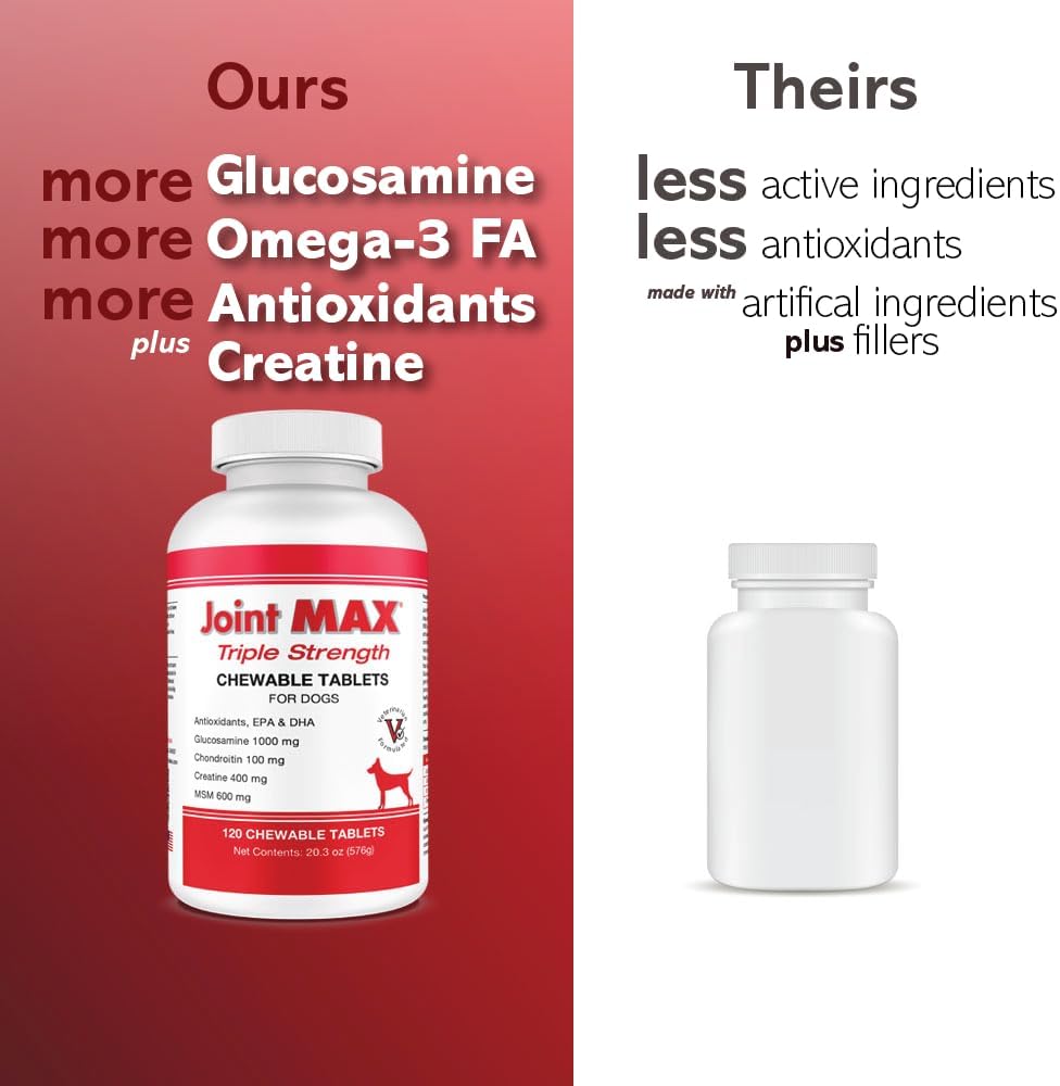 PHS Joint MAX Triple Strength (TS) Chewable Tablets for Dogs - Glucosamine, Chondroitin, MSM - Vitamins, and Antioxidants - Hip and Joint Pain Relief and Support Supplement - Made in USA - 120 Tablets
