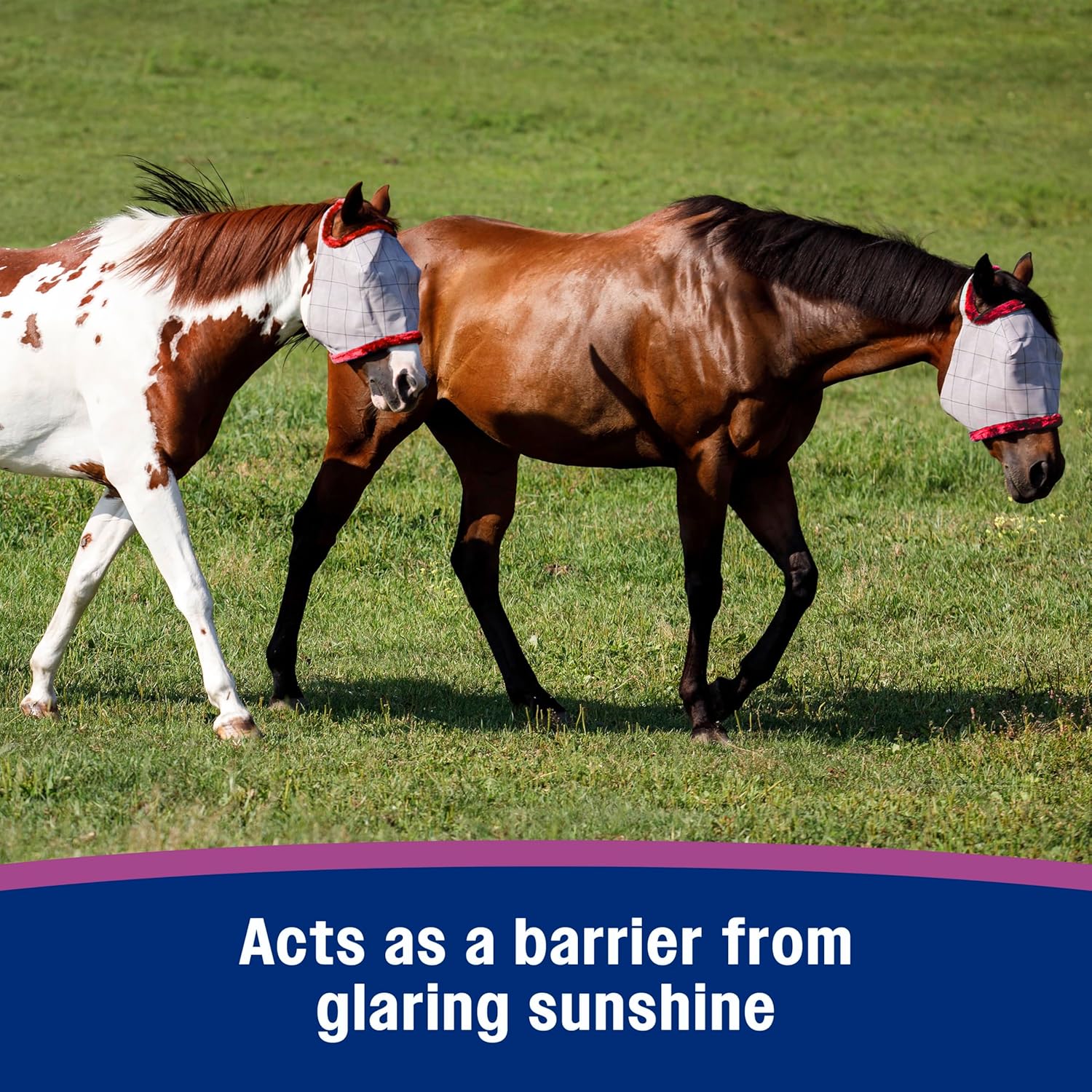 Farnam SuperMask II horse fly mask without ears, extended coverage, protects eyes from insects and debris, adjustable throat latch, Yearling size