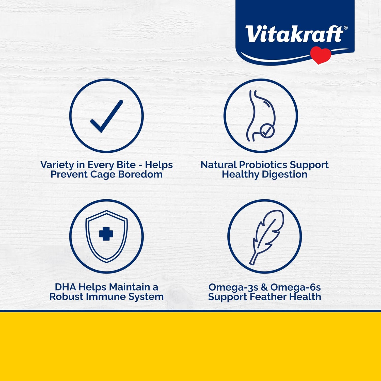 - NUTRIENT-FORTIFIED: Natural probiotics support digestive health, and DHA omega 3-s support healthy heart, brain, and feathers.