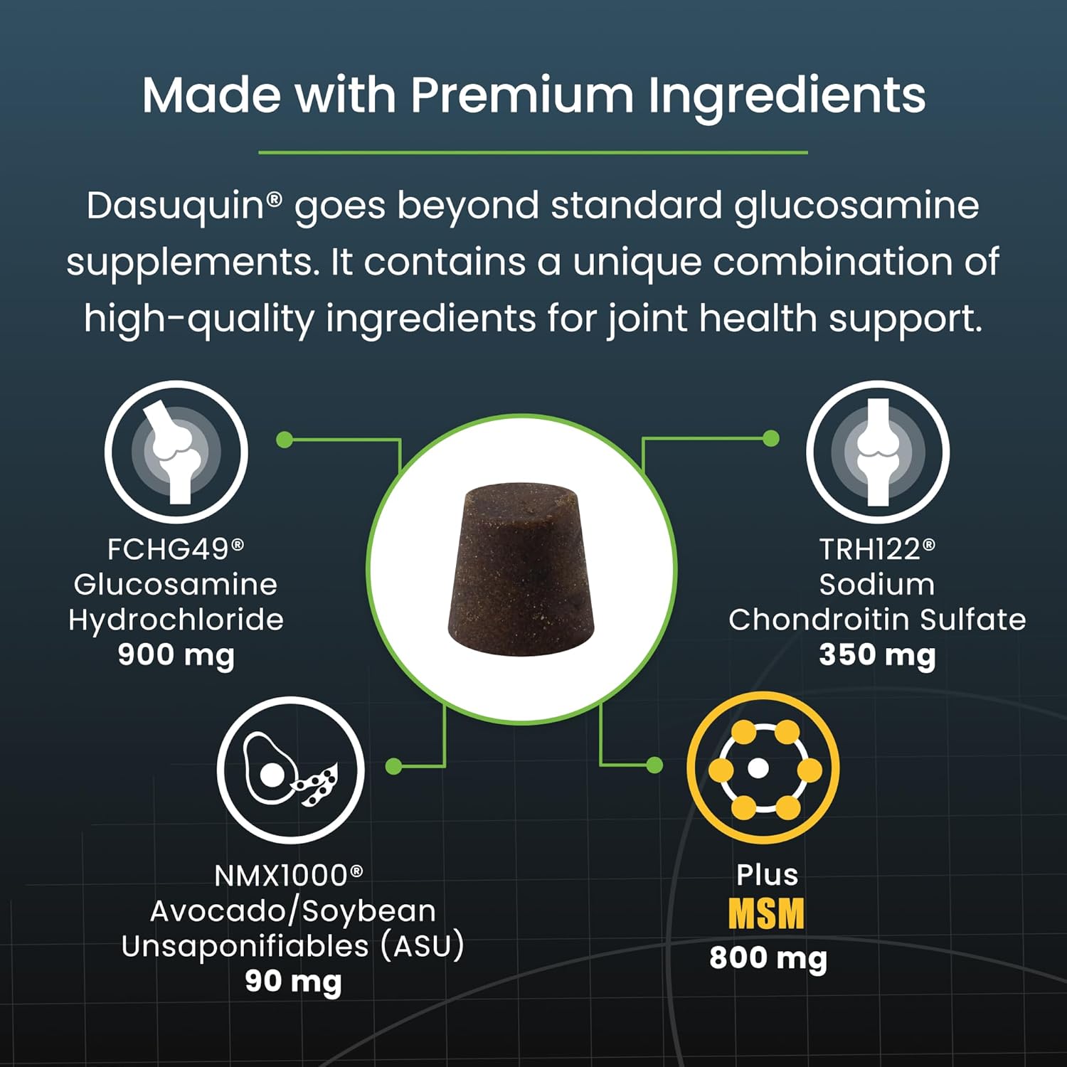 - Better Together with ASU - Dasuquin goes beyond standard glucosamine supplements with avocado/soybean unsaponifiables (ASU), a unique ingredient that works synergistically with glucosamine and chondroitin to help support healthy joints and cartilage.
