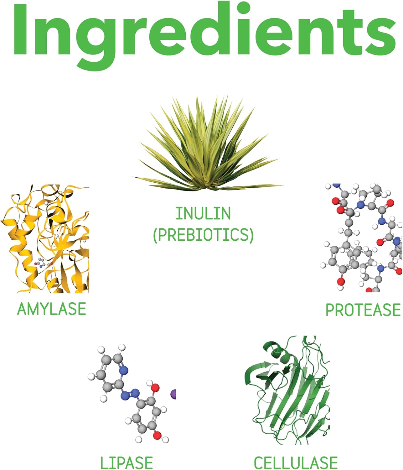- POWERFUL DIGESTION SUPPORT FROM THE INSIDE OUT - Digestive enzymes break down food efficiently for your pet's maximum benefit. Amylase breaks down carbohydrates and starches, cellulase allows absorption of dietary fiber, protease breaks down healthy proteins, and lipase breaks down fatty acids for easy absorption. Inulin is the final ingredient that feeds healthy bacteria already living in your pet's gut. It plays a large role in healthy digestion and a healthy immune system.