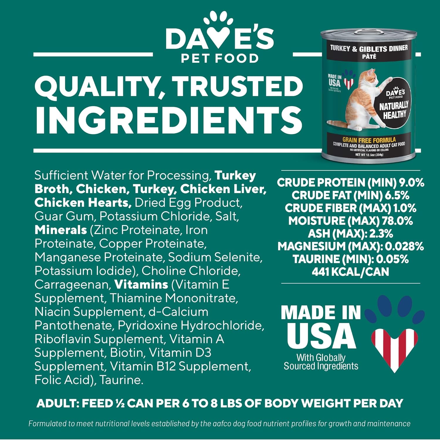 - TRULY GREAT FOOD, MADE IN USA, REASONABLE PRICE. Dave’s mission is to provide yummy, nutritious, high-quality food for cat owners seeking healthy options at an affordable price. Made in the USA with the finest domestic & imported ingredients.