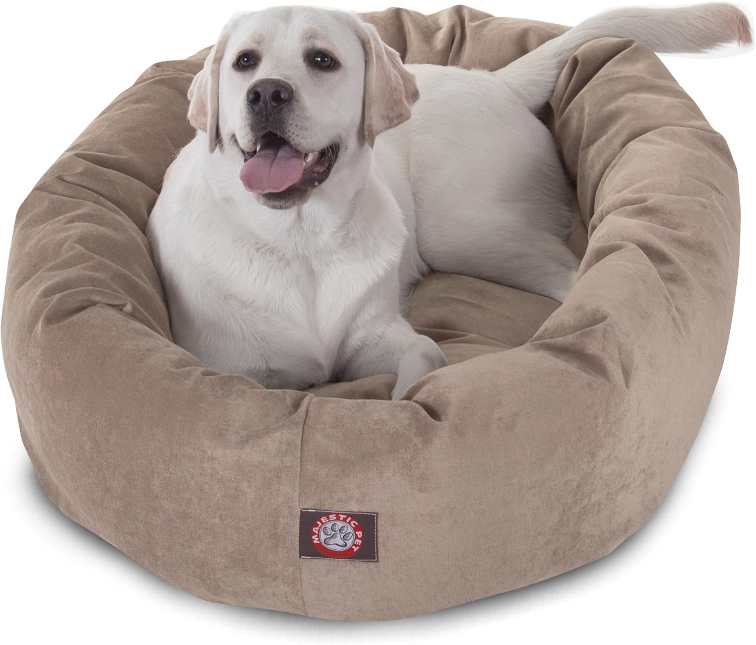 Majestic Pet 40 Inch Micro Velvet Calming Dog Bed Washable – Cozy Soft Round Dog Bed with Spine for Head Support - Fluffy Donut Dog Bed 40x29x9 (inch) – Round Pet Bed Large – Pearl
