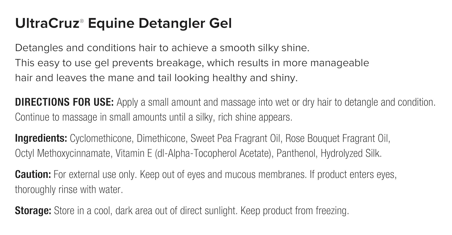 - Detangles, fortifies and conditions mane and tail