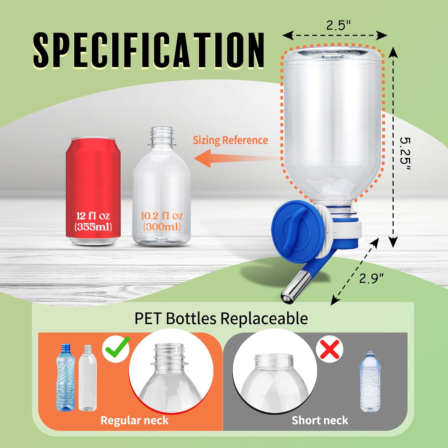 - 🐾 User-friendly Screw-on Bracket: Simple and Easy Installation. You Can Easily Snap the Water Bottle On or Off for Cleaning and Refilling Water.