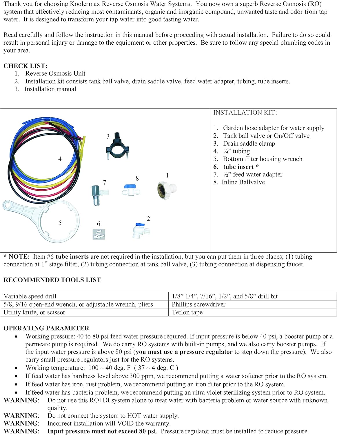 - : Included Components Filter, Tubing, Drain Saddle, Inlet Hose, Outlet Hose, RO System, Instruction Manual Filter, Tubing, Drain Saddle, Inlet Hose, Outlet Hose, RO System, Instruction Manual See more