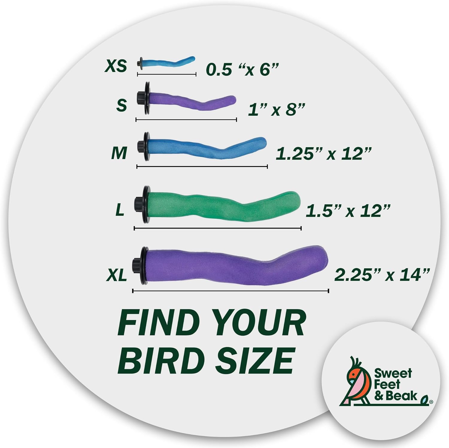 Sweet Feet & Beak Safety Pumice Bird Perch, Medium 1-1/4" X 12", Green - Lightweight Grinding Bird Perches for Cage - Bird Nail Trimming Perch for Healthy Beak & Feet - Multi-Size & Color Parrot Stand