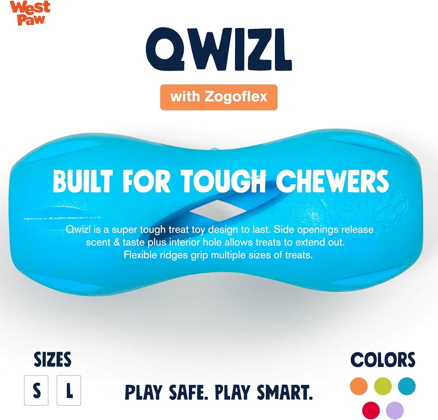 West Paw Zogoflex Qwizl Interactive Treat Dispensing Dog Puzzle Treat Toy for Dogs, 100% Guaranteed Tough, It Floats!, Made in USA, Large, Aqua Blue