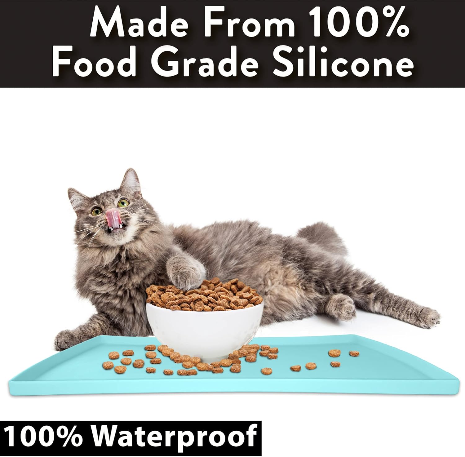 CatGuru Cat Food Mat, Small & Large Pet Feeding Mat, 100% Waterproof Cat Placemat for Food and Water, Non-Slip Silicone Mats for Cats Bowls or Water Fountain (Large, Aruba)