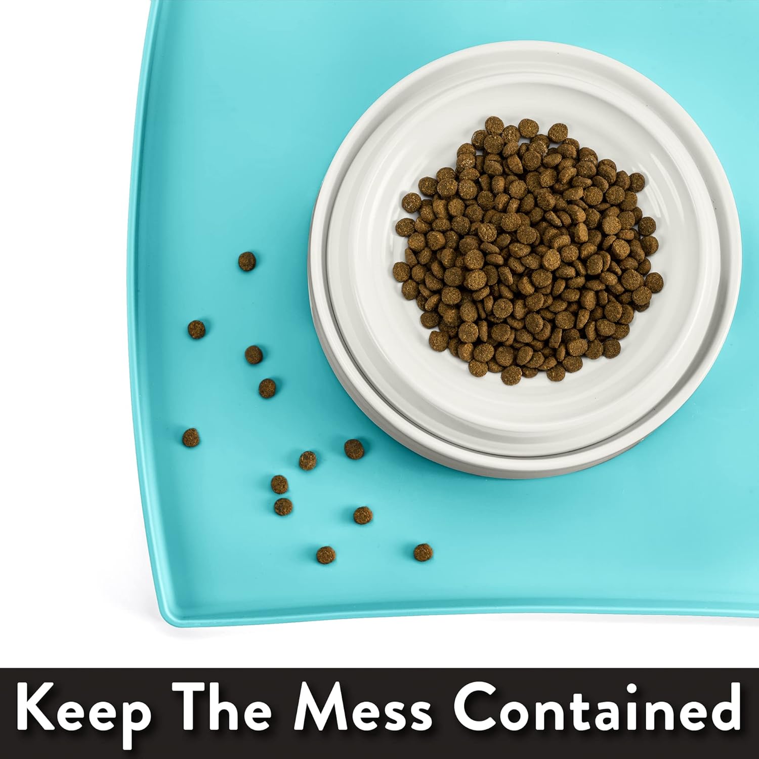 - ⭐️ EXTRA HIGH EDGE: CatGuru Cat Food Mat is the only cat food mat on the market that can hold up to 5 cups of spilled food and water due to the raised outer edges. This heavy duty pet food mat is specially designed for messy eaters. Use this cat mat under cat bowls, cat water fountain or cat feeder to protect your floors.