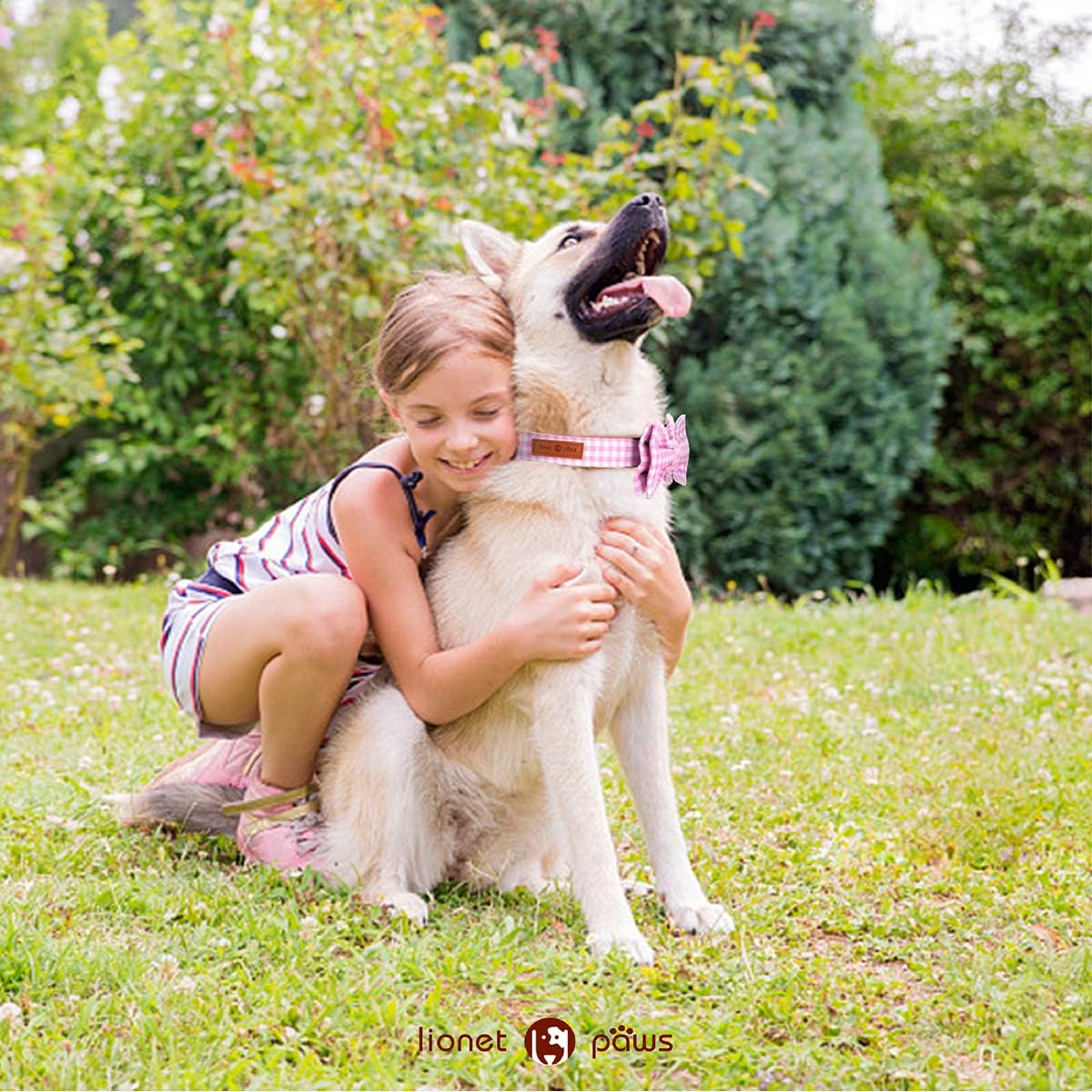 Lionet Paws Dog Collar with Bowtie, Comfortable Adjustable Cute Pink Gingham Bow Tie Collar for Female Dogs Gift, Medium, Neck 13.5-22 inches