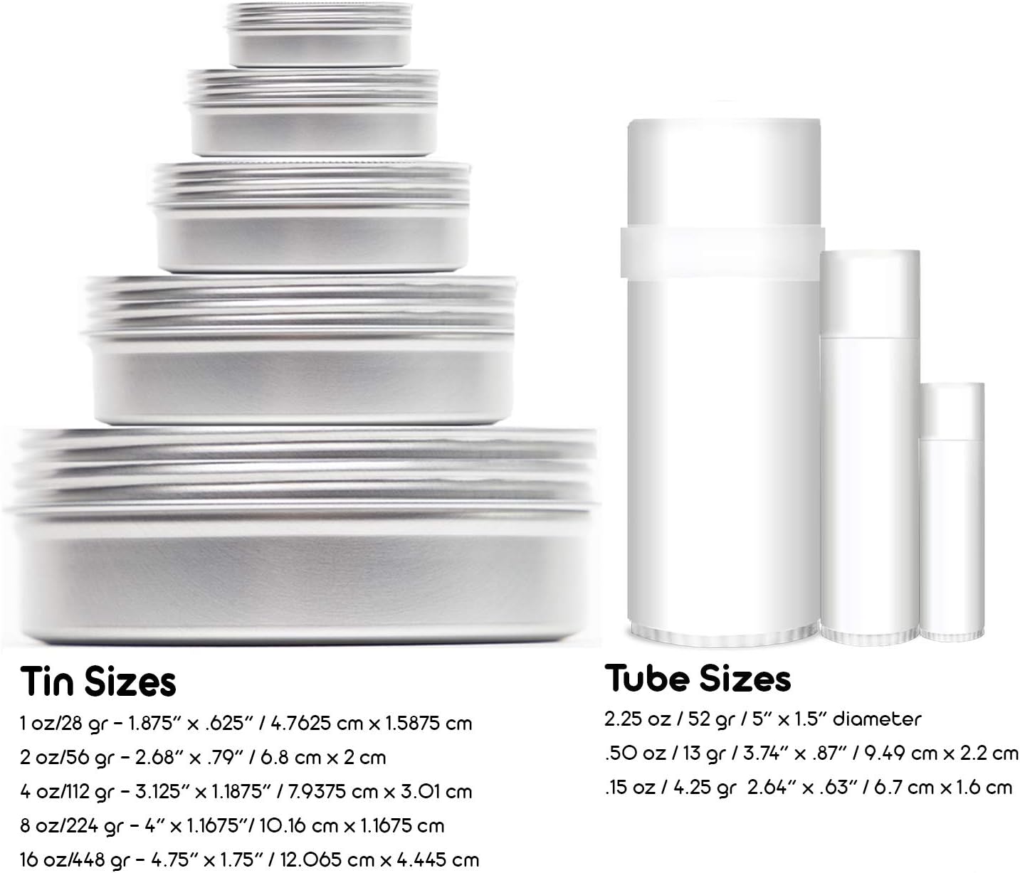 - Available in 1,2,4, 8 and 16 ounces tins,.15 ounces and .50 ounces tubes