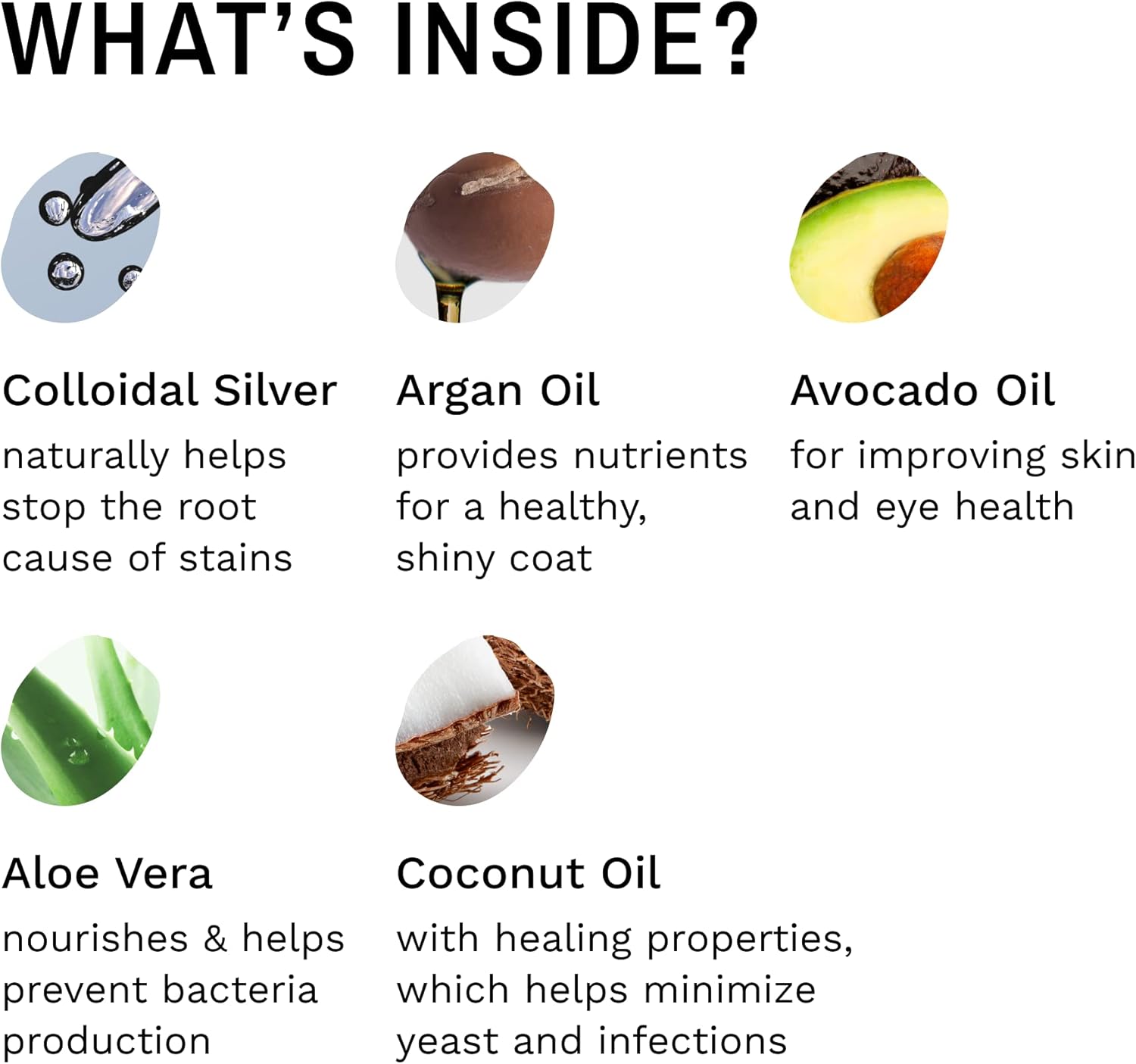 - STEP 1 IN 3-STEP SYSTEM: Eye Envy Tear Stain Facial Cleanser gently washes away crusty debris and eye discharge with this natural foaming cleanser. Foaming, tearless formula contains a 30PPM Colloidal Silver to help control tear and beard stains.