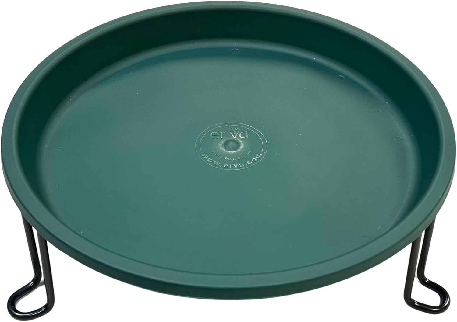 Ground Level Bird Bath - Floor Standing Bird Bath for Patio, Garden, or Deck - Black Steel Wire with Green Dish - Made in USA - Erva BA5SL