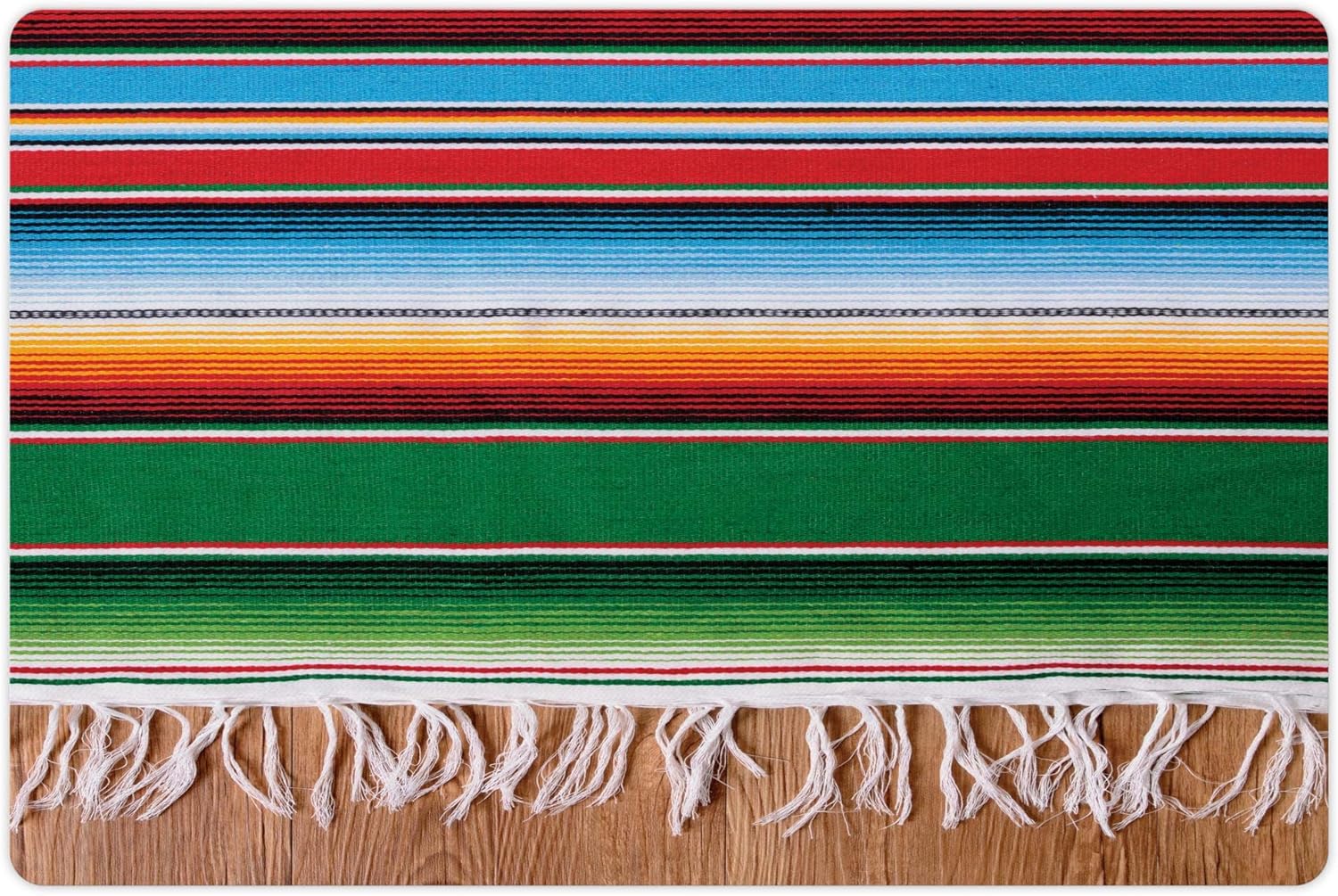 Lunarable Mexican Pet Mat for Food and Water, Colorful Boho Serape Pattern with Horizontal Stripes and Lines Cultures Picture, Non-Slip Rubber Mat for Dogs and Cats, 18" X 12", Green Red