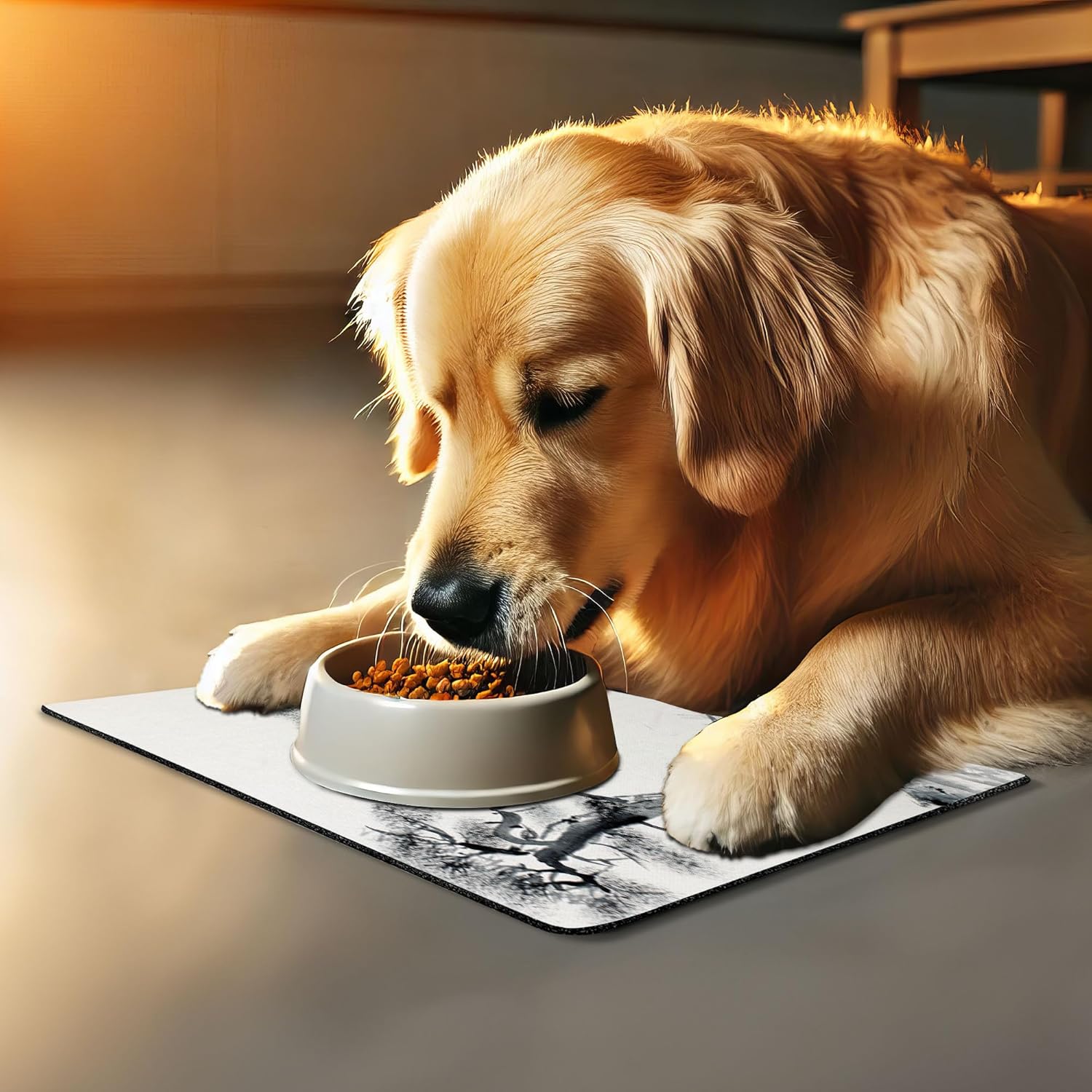 - Features - Fun prints and long-lasting colors. Find any theme and color you want to match your room decor or your pet’s personality. This pet feeding mat can even feature your cat's or dog’s favorite item or design, adding a cheerful touch to your pet’s feeding area.