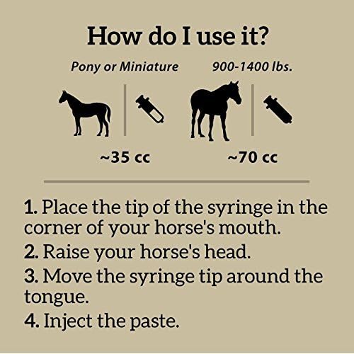 - HOW TO USE? - Place the tip of the syringe in the corner of your horse’s mouth. Raise your horse’s head. Move the syringe tip around the tongue. Inject the paste