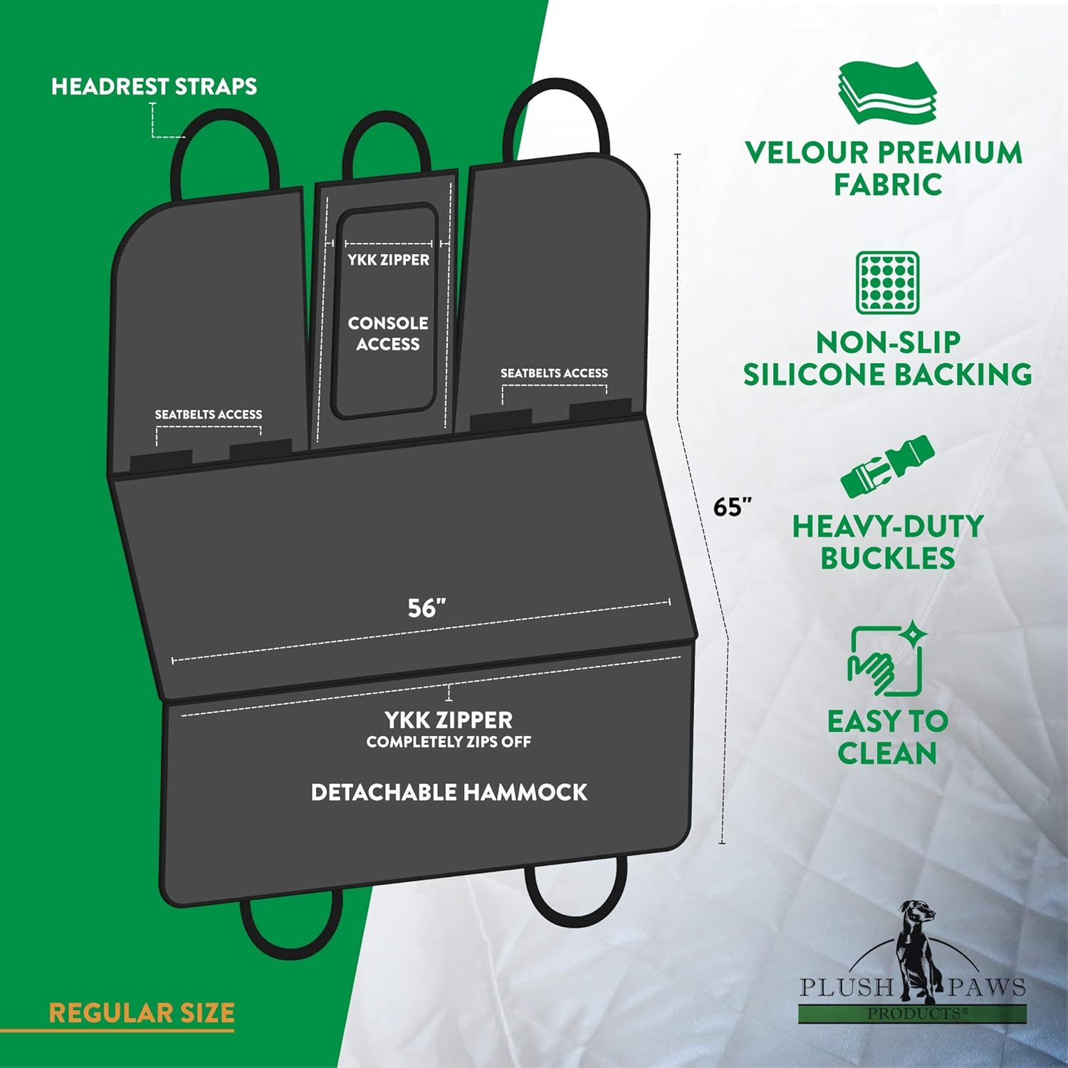 Plush Paws Products Velvet Convertible Rear Seat Cover | Durable Diamond Stitching | Washable & Waterproof Back Seat Cover | Car, Truck & SUV | Nonslip, Tear Resistant Protection | X-Large London Grey