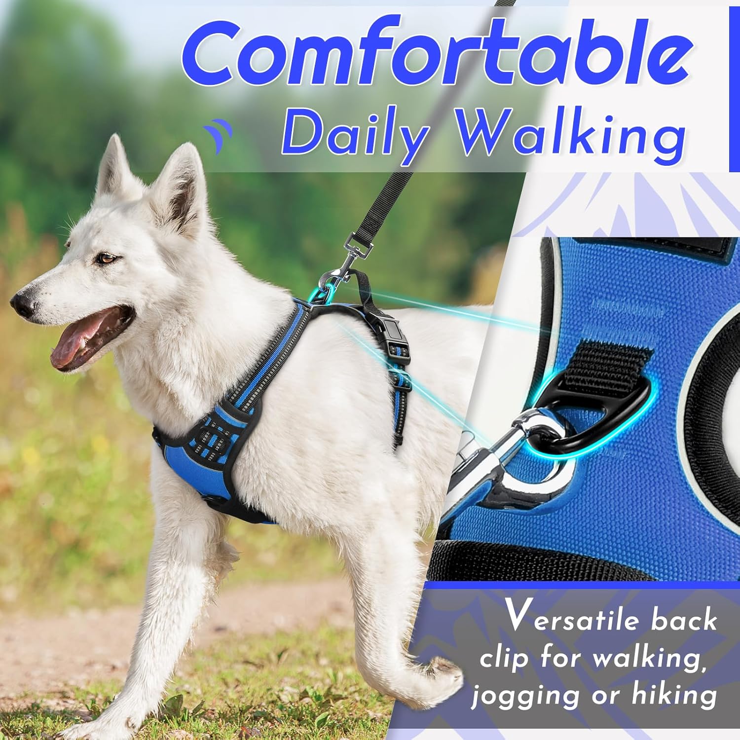 Eagloo Dog Harness for Large Dogs, No Pull Service Vest with Reflective Strips and Control Handle, Adjustable and Comfortable for Easy Walking, No Choke Pet Harness with 2 Metal Rings, Blue, L