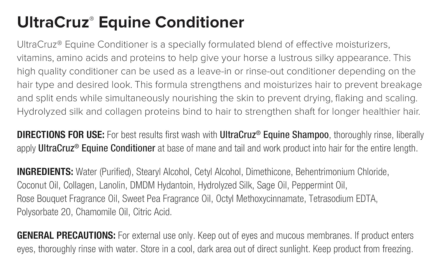 - UltraCruz Equine Conditioner for Horses Strengthens hair to help prevent breakage