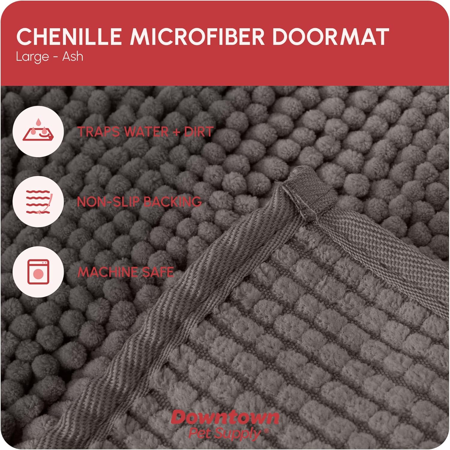 My Doggy Place Microfiber Dog Mat for Muddy Paws, 36" x 26" Ash - Absorbent and Quick-Drying Dog Paw Cleaning Mat, Washer and Dryer Safe - Non-Slip Rubber Backed Dog Floor Mat, Large