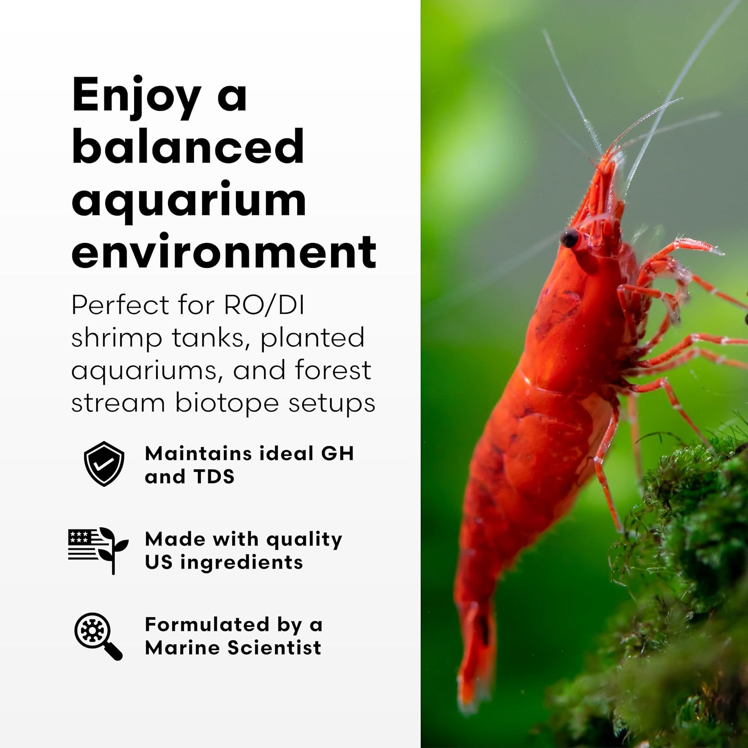 - SUPPORTS SHRIMP AND PLANT HEALTH Provides ideal ratios of calcium, magnesium, potassium, and sodium for shrimp molting, osmoregulation, and plant growth