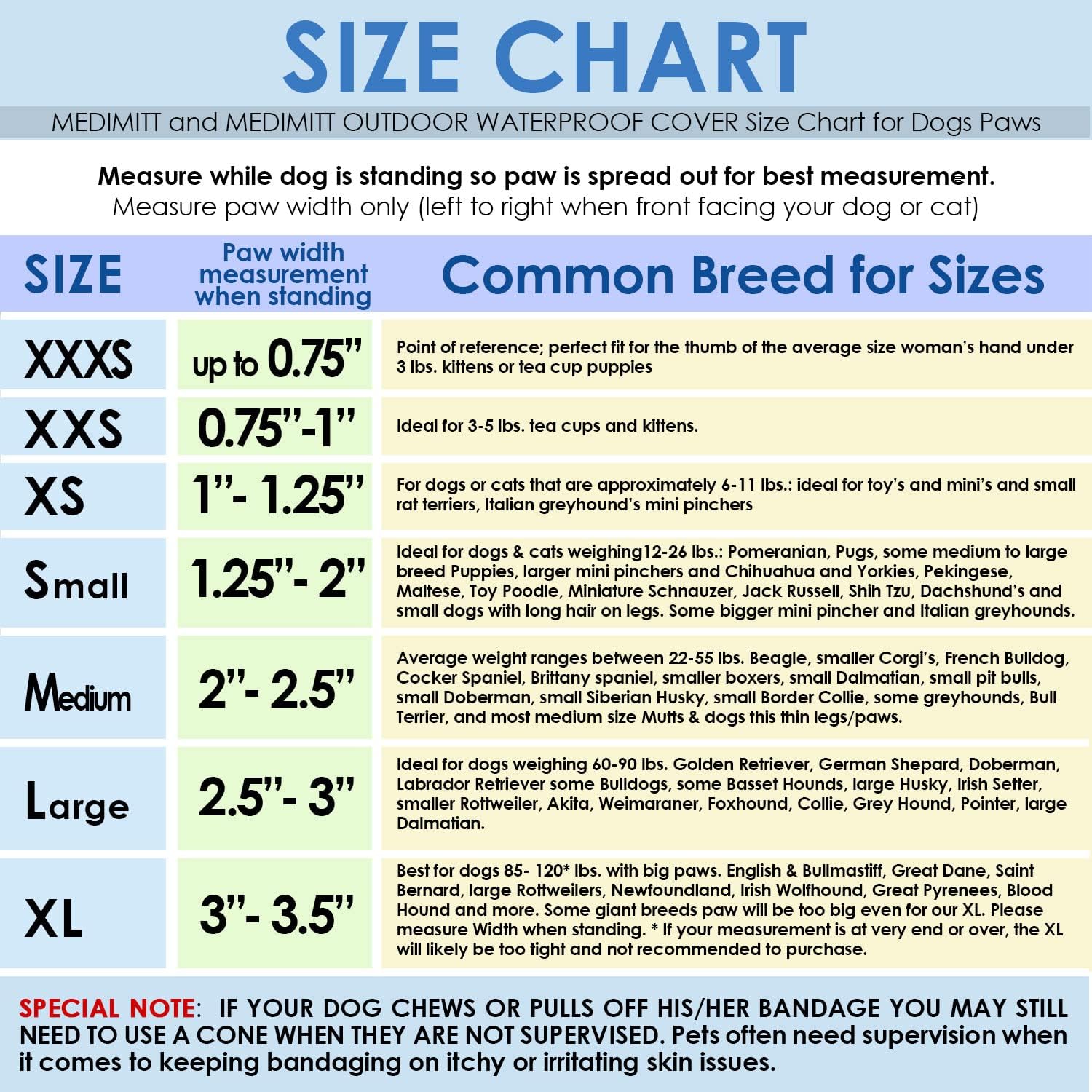 - Size XXS- These soft medical dog shoes can be worn indoors like a sock. Paw width measurement when standing: between .75-1”. Ideal for 3-5 lbs. tea cups and kittens. IF YOUR DOG CHEWS OR PULLS OFF HIS/HER BANDAGE YOU MAY STILL NEED TO USE A CONE WHEN THEY ARE NOT SUPERVISED. Pets often need supervision when it comes to keeping bandaging on itchy or irritating skin issues.