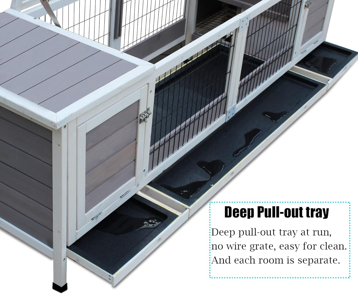 Rabbit Hutch Indoor Leakproof Bunny Cage Fir WoodenOutdoor Bunny House with Wire Floor Leakproof Plastic Tray (Grey)