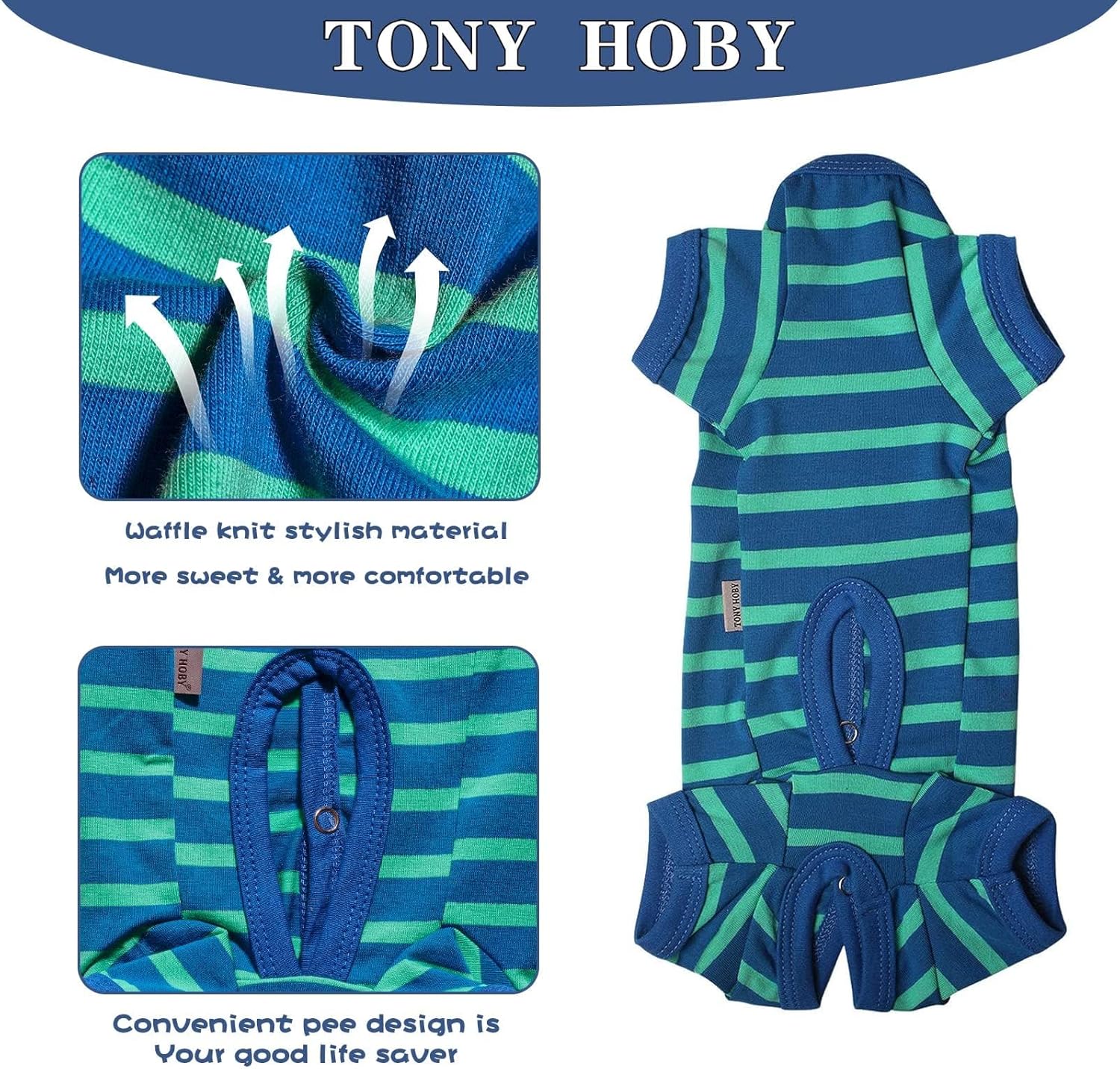 - 【Unique Design】-TONY HOBY Female/Male Dog Pajamas has a unique design for men and women, focusing on protecting the dog's abdomen; and using metal buttons, easy to wear; unique four-leg design, elastic waist, and with bright stripes, beautiful and fashionable.