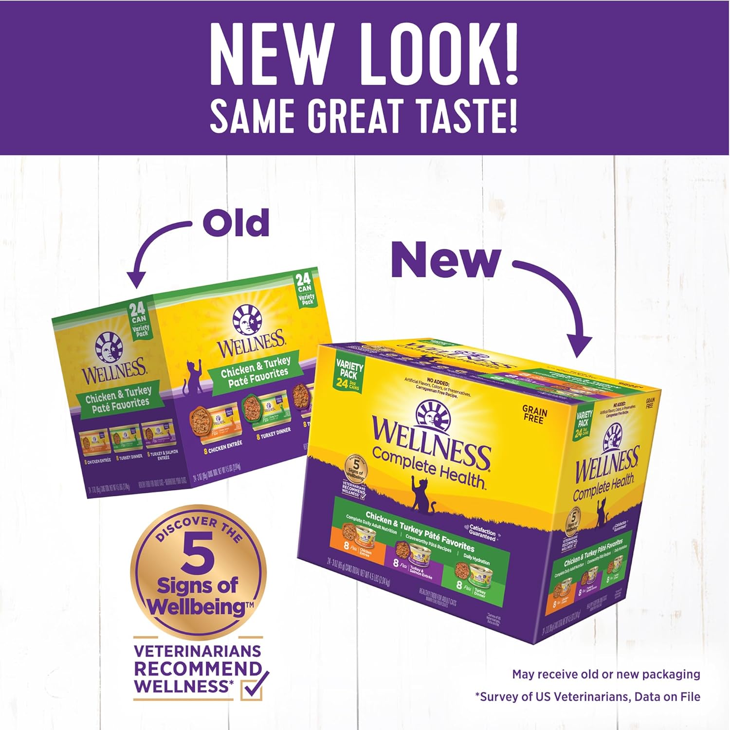 Wellness Complete Health Pate Adult Wet Cat Food, Natural, Protein-Rich, Grain-Free, 3 Ounce, 24 Pack, (Chicken & Turkey Variety Pack)