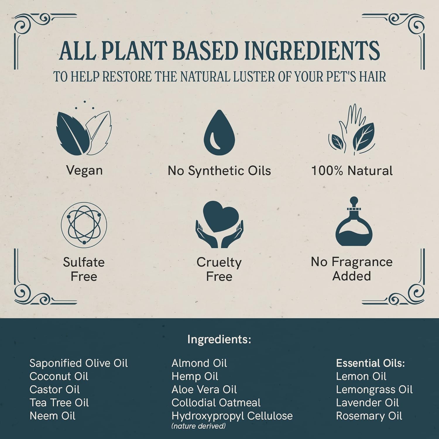 - Powered by Clean, Botanical Ingredients - Made with pet-safe ingredients like Aloe Vera, Almond Oil, Colloidal Oatmeal, and calming essential oils, this non-GMO, gluten free dog shampoo hydrates and refreshes without synthetic additives or harsh ingredients.