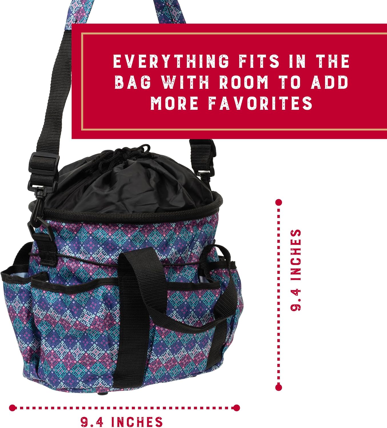 - Convenient Design: This horse grooming tote features a top drawstring closure and flexible retaining strap to safely secure and hold all sorts of tools - use the wide pockets and spacious interior to easily organize your horse accessories