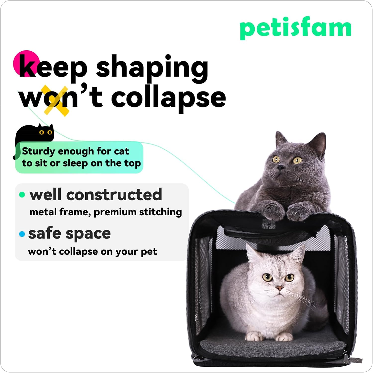 petisfam Easy Load Pet Carrier for Large, Medium Cats, 2 Cats and Small Dogs with Comfy Bed. Easy to Get Cat in, Escape Proof, Easy Storage, Washable, Safe and Comfortable for Vet Visit and Car Ride
