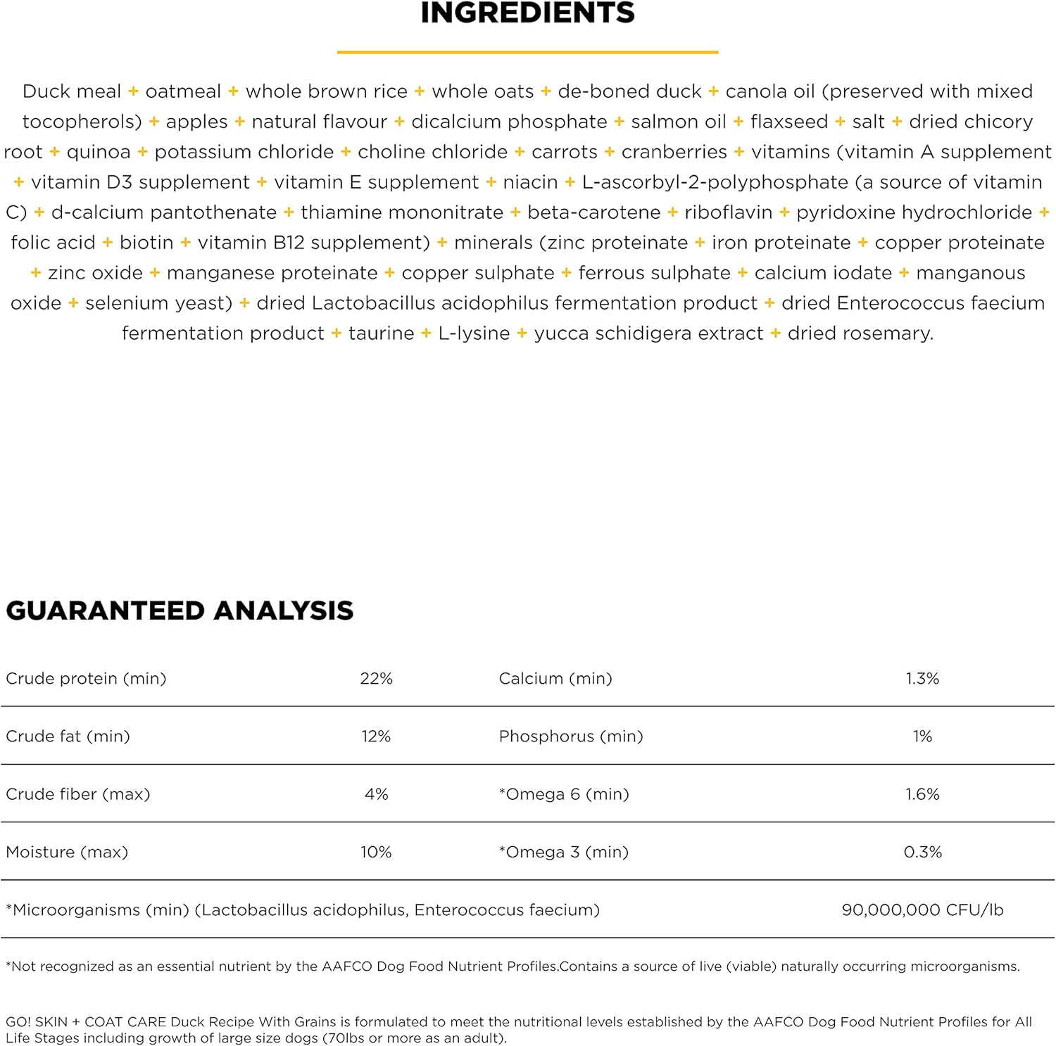 Go! Solutions Skin + Coat Care, Dry Dog Food, Duck Recipe with Grains, 12 lb Bag