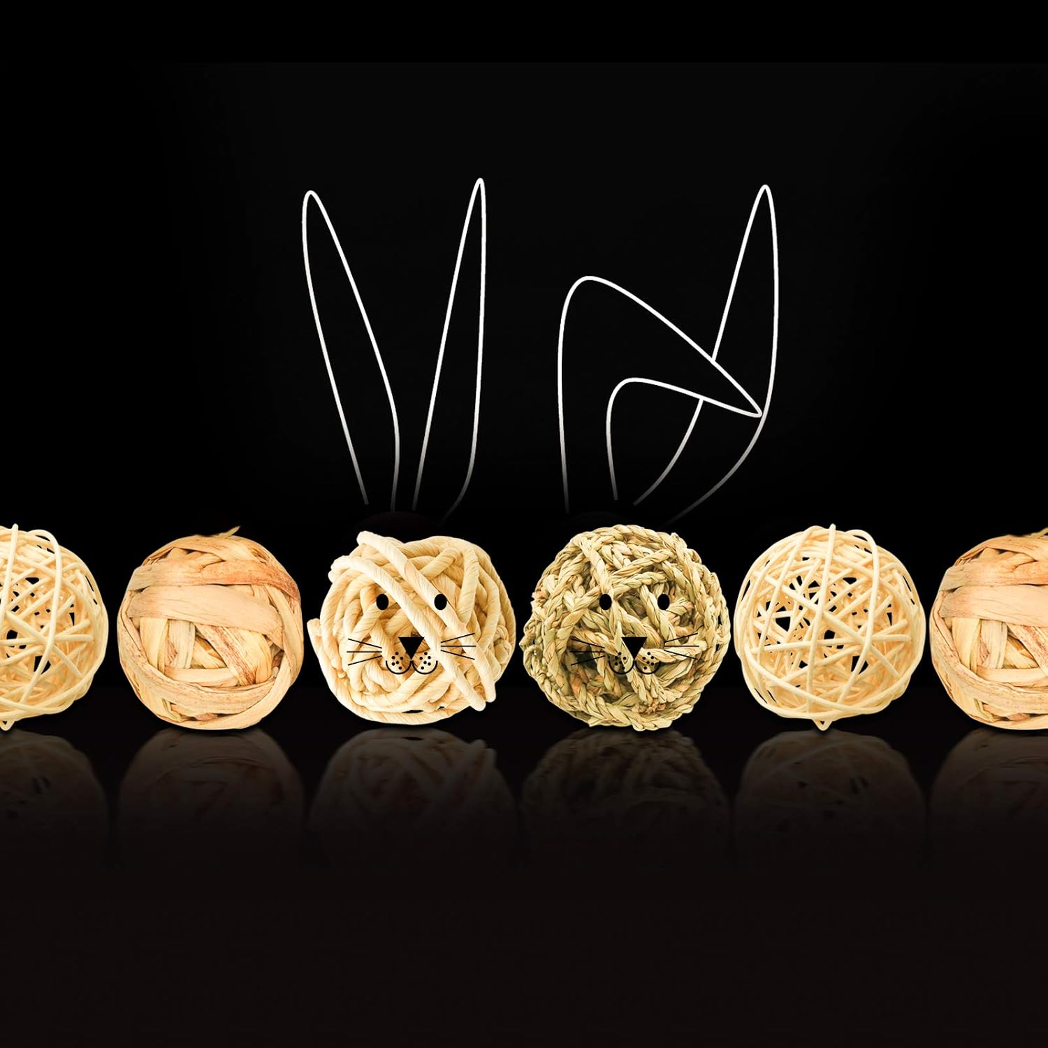 8 Pcs Small Animals Play Balls Rolling Activity Chew Toys Gnawing Treats for Rabbits Guinea Pigs Chinchilla Bunny Natural Balls, Pet Cage Entertainment Accessories (8Pcs)