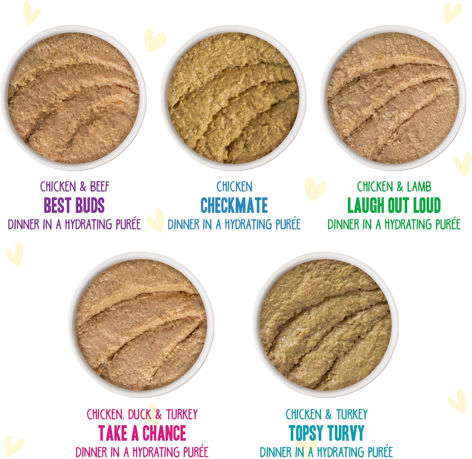 - Perfect for Poultry loving Cats! Variety Pack includes: Chicken Checkmate,Chicken & Beef Best Buds, Chicken & Turkey Topsy Turvy, Chicken & Lamb Laugh Out Loud, Chicken, Duck & Turkey Take a Chance