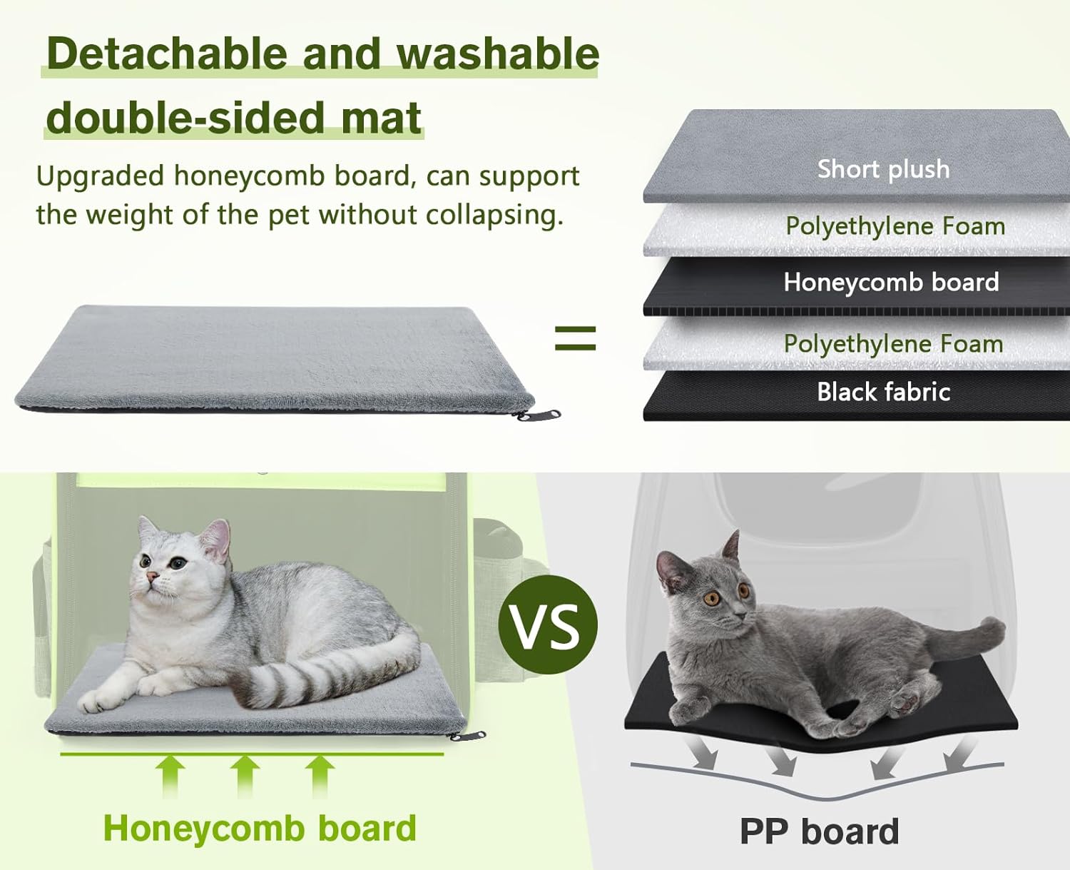 - 【 GREAT VENTILATION & VISIBILITY & COMFORT 】: A 3-panel acrylic board design can provide excellent light transmission and visibility. 4 ventilation holes are located on both sides and at the top with a breathable mesh, ensuring airflow and no sultry heat. To enhance comfort, the pet cushion is placed inside the bag's bottom and has a removable, washable cover. This ensures your furry friend has a spot to rest while on the go.