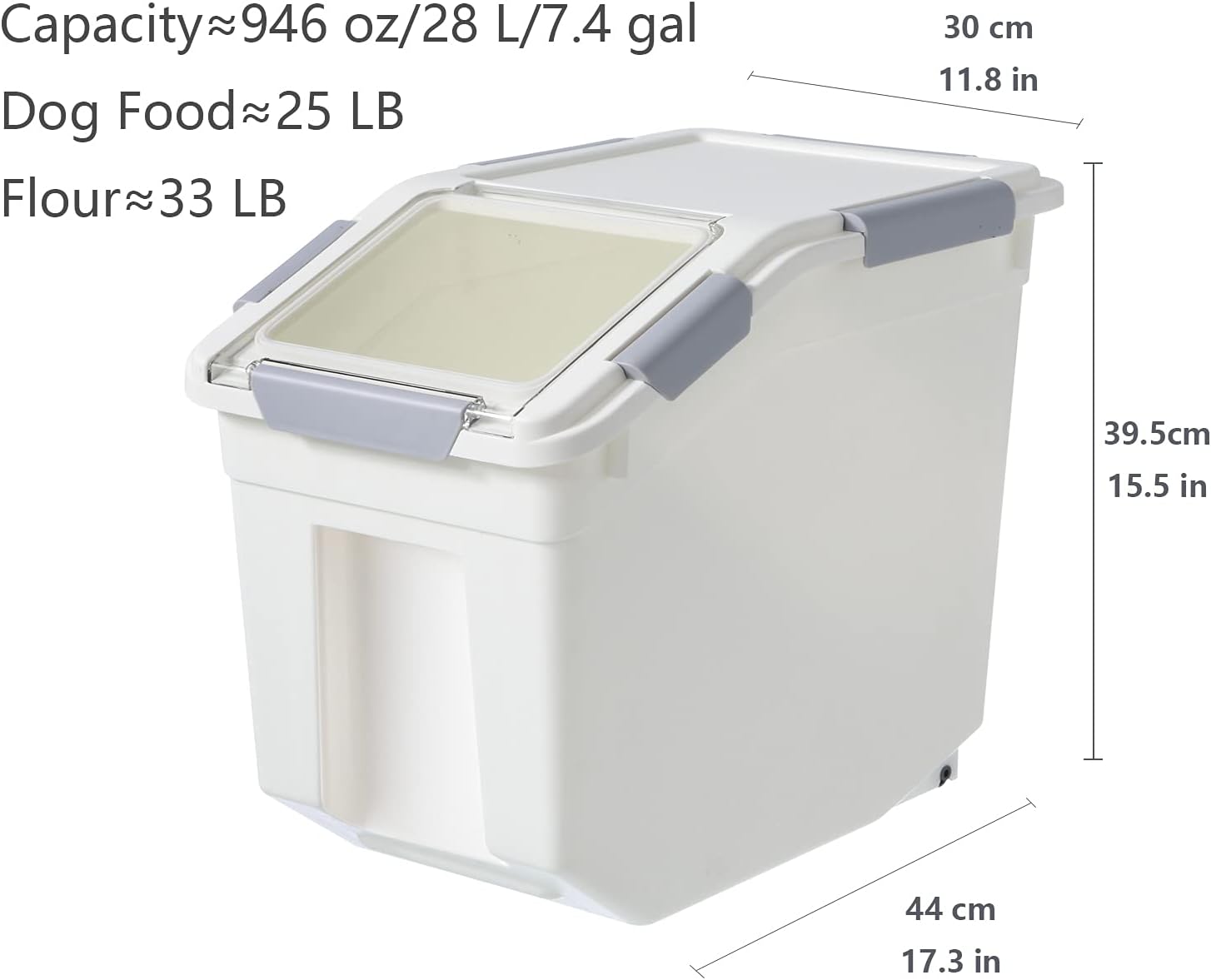 - 【LARGE OPENING OBLIQUE DOOR & HIDDEN WHEELS】 The storage box uses a large clean inclined opening to facilitate finding and taking out food. There are 2 wheels hidden behind the food storage container, you only need to lift the front to move it easily.