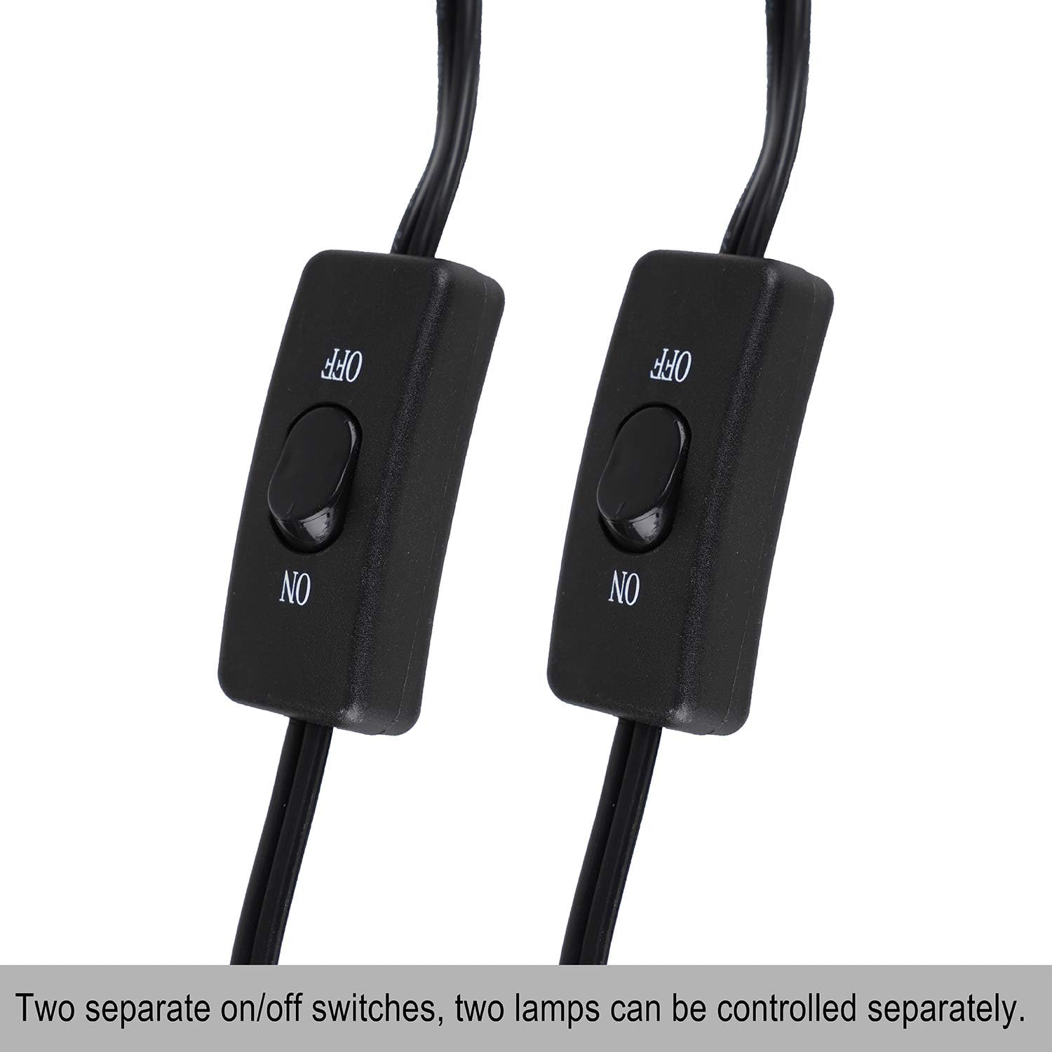 - 【TWO INDEPENDENT SWITCHES】:This dual reptile lamp fixture has two independent switches and plugs. Two independent switches can control each lamp separately. You can easily set comfortable light and temperature environment by equipping different lamps and switching on or off lamps for your pets.