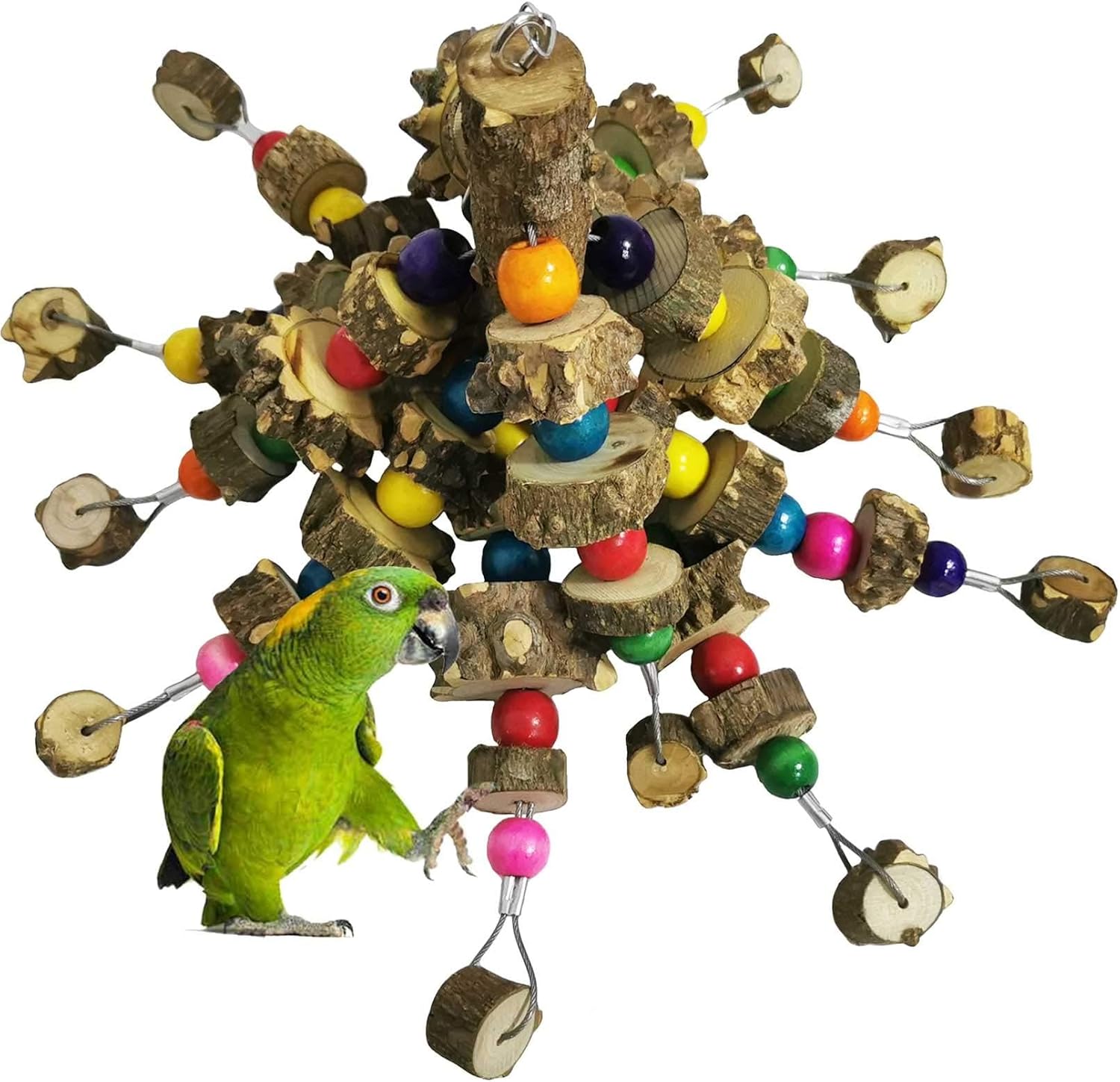 - ✅ Safe & Natural Materials: Made of 100% untreated natural wood blocks (prickly ash wood), non-toxic and bird-safe. Perfect for satisfying parrots' instinctive chewing needs while protecting their beaks.