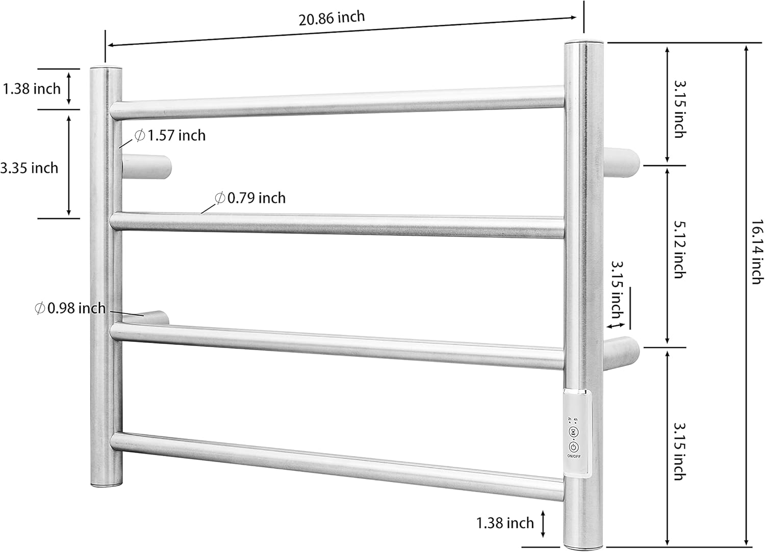 - Timer & LED Indicators: The towel warmer has a built-in timer of 2h or 4h with a visual LED indicator. Press the 2 or 4 hour buttons will dry your towels, and then it will automatically shut off itself when time is up.