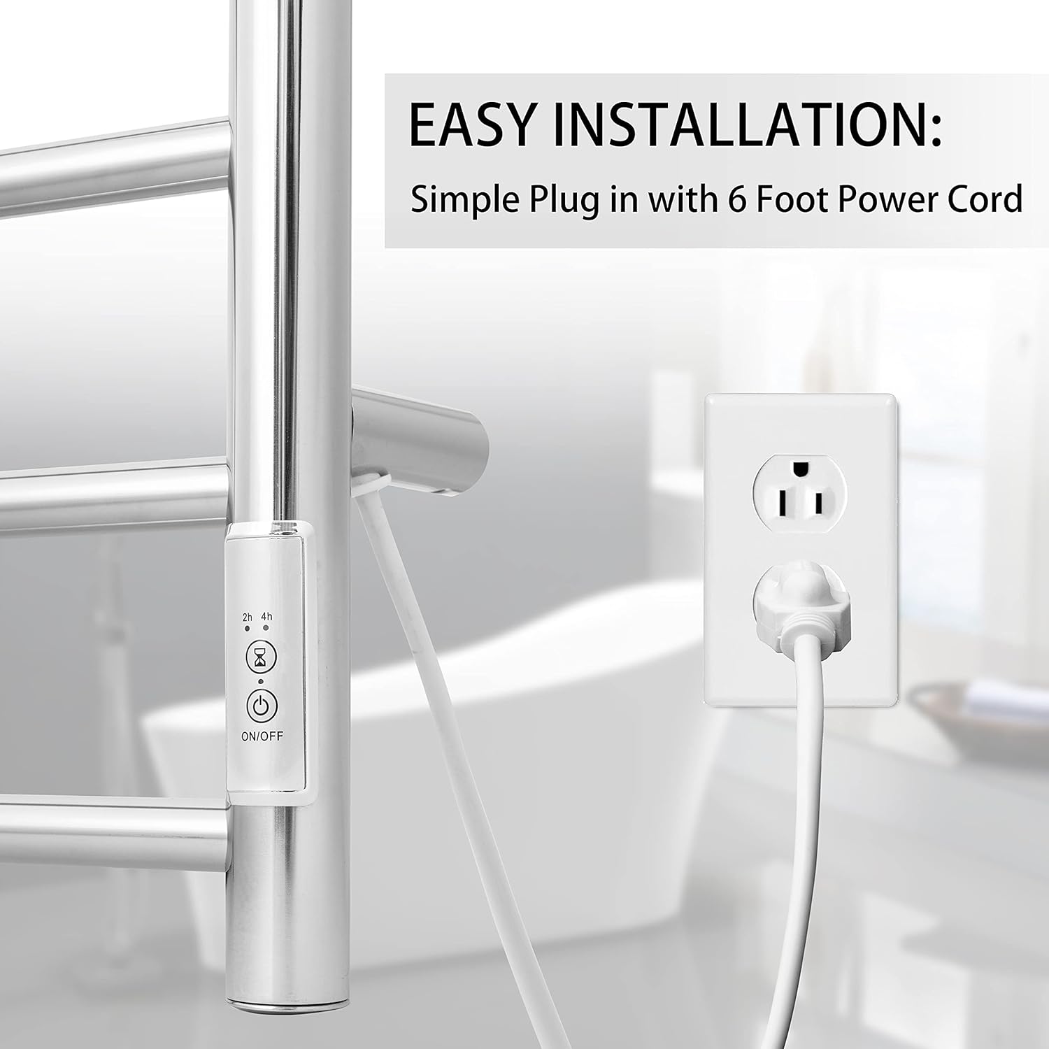 KEG Towel Warmer Wall Mounted with Built-in Timer 4 Bars Electric Stainless Steel Heated Towel Racks for Bathroom, Hot Plug-in Bath Towel Heater Polish Chrome