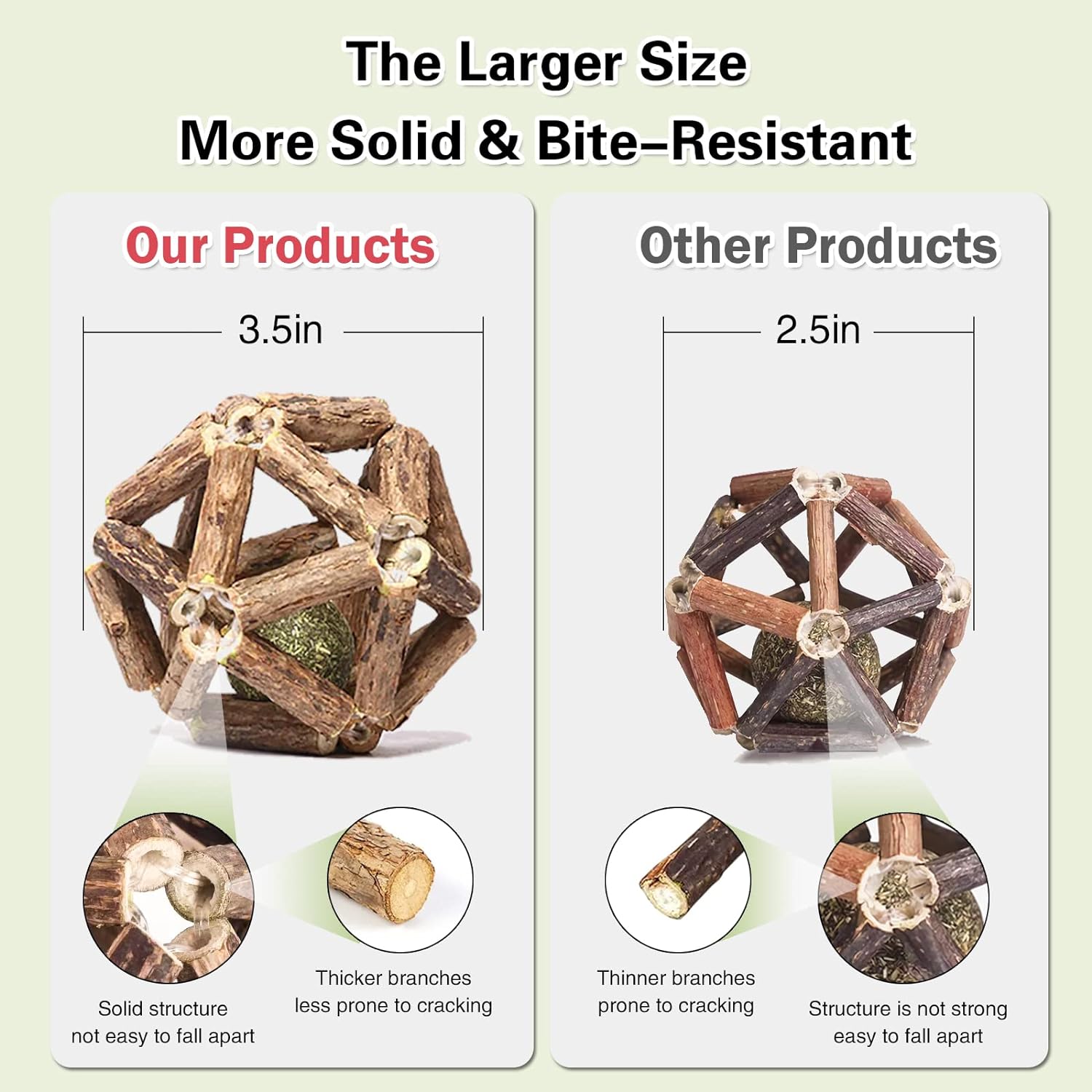 Catnip Toys-2Pcs Natural Silvervine Stick Catnip Ball&Bell Ball-Cat Toys for Indoor Cats- Cleaning Teeth Molar Tools Matatabi Cat Chew Toy-Kitten Toys All Breeds