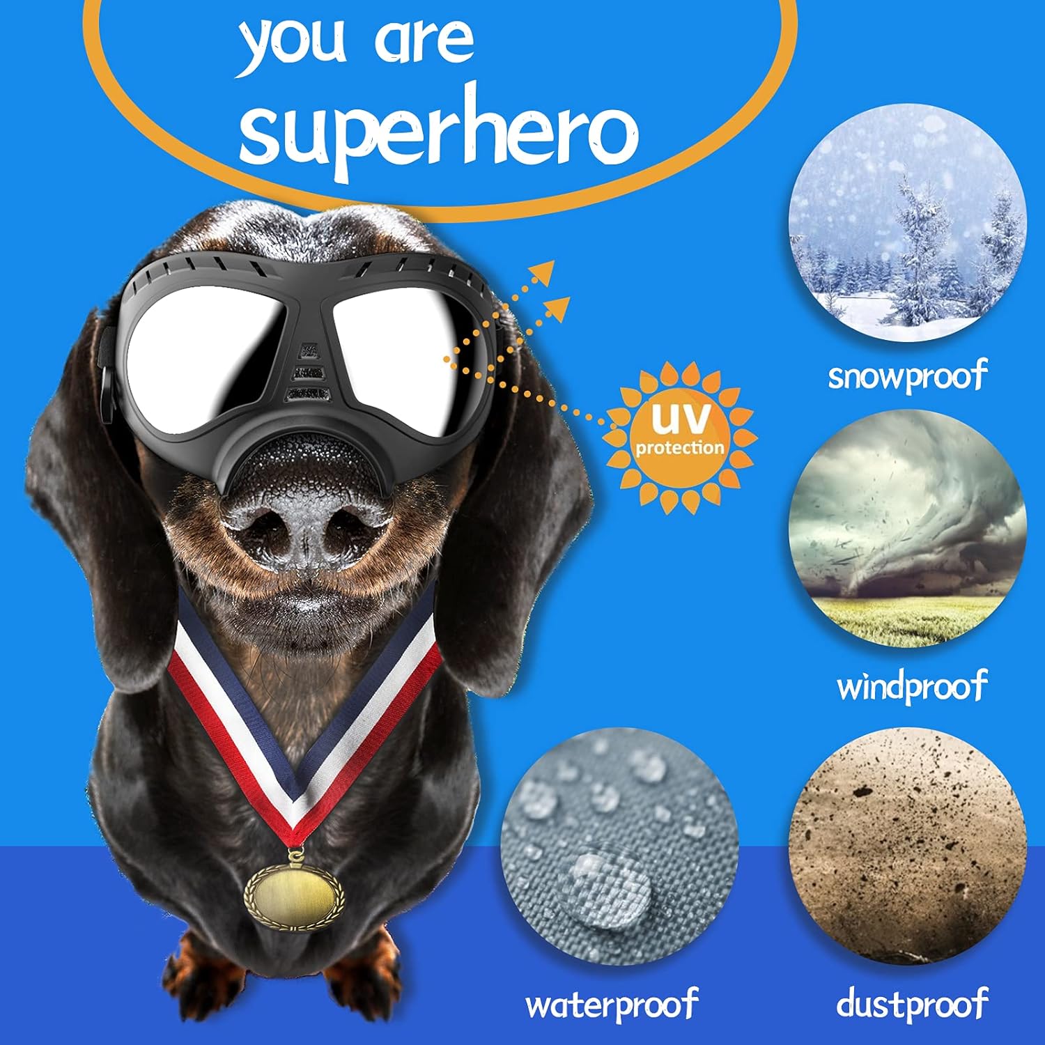 - [ Nice View ]: Wide goggles can stay in the dog's head pretty well, and provide a good view, the soft frame won't hurt the fur on the dog's face and eyes, and more comfortable for your dog to put-on.