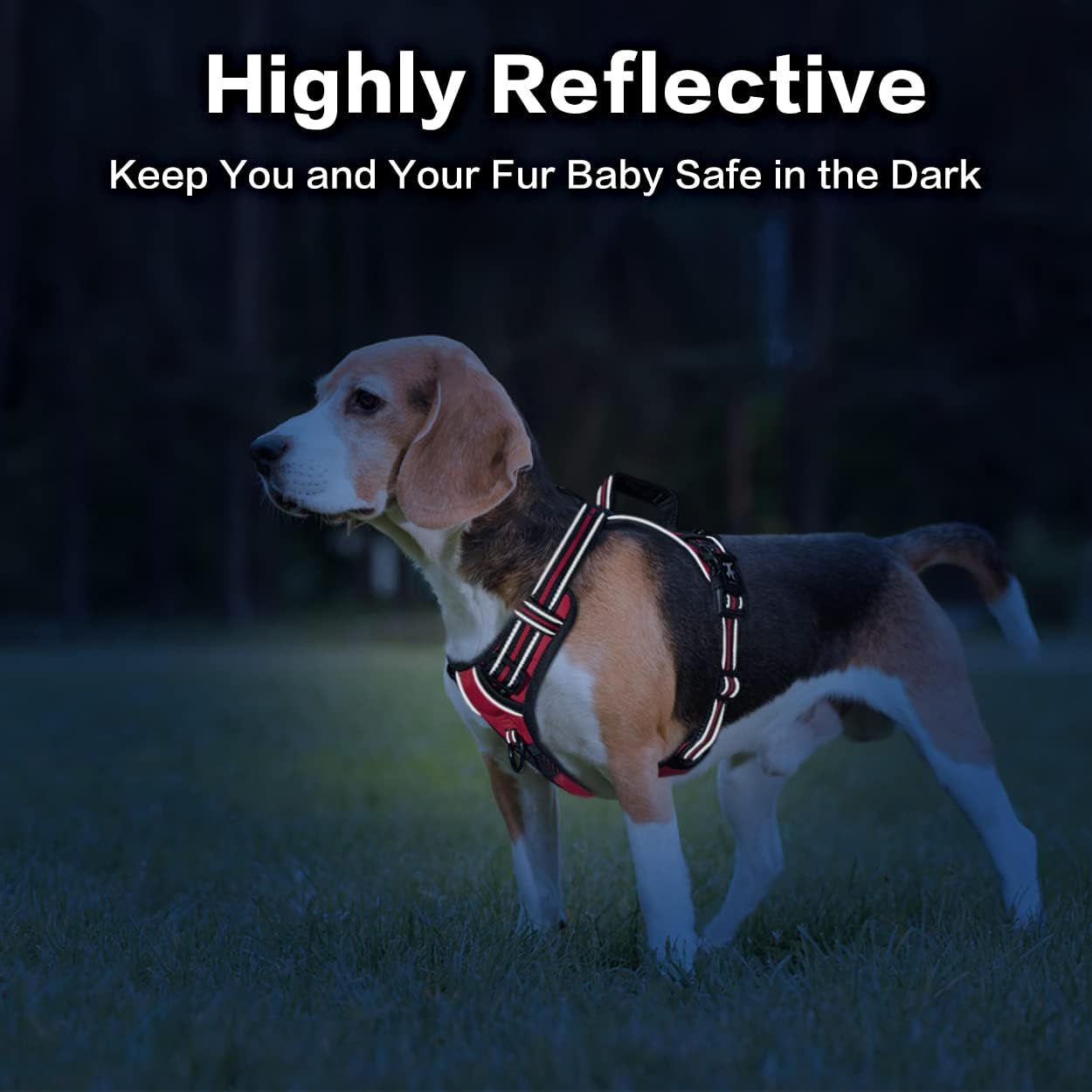 PoyPet No Pull Dog Harness, No Choke Front Clip Reflective Dog Vest with Soft Padded Vertical Handle, 3 Leash Attachments for Small Medium Large Dogs (Red,L)