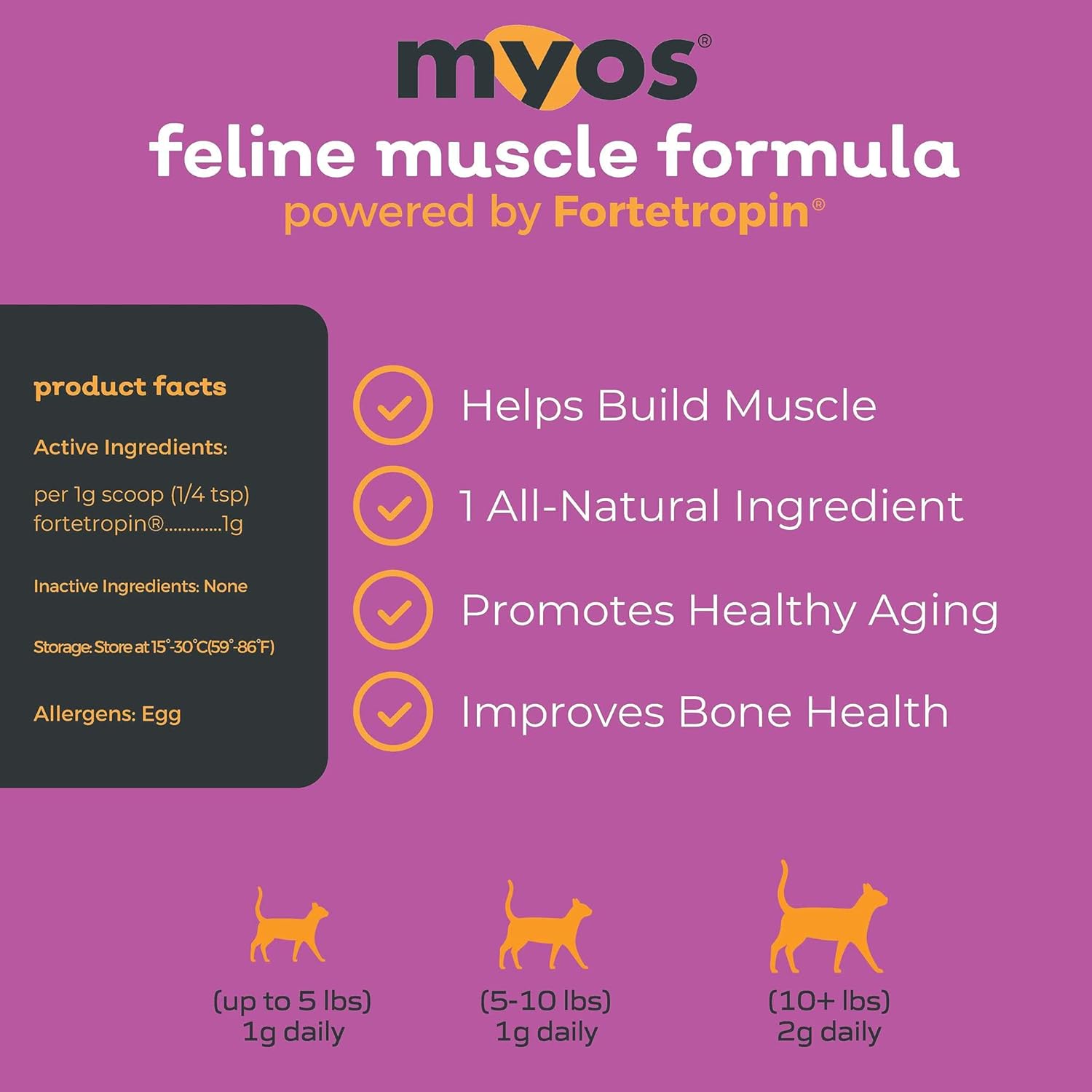 - DESIGNED FOR RECOVERY AND GROWTH - MYOS Feline Muscle Formula is particularly beneficial for cats recovering from surgery or injury, as Fortetropin promotes muscle repair and growth, helping your cat regain their strength and vitality more quickly.