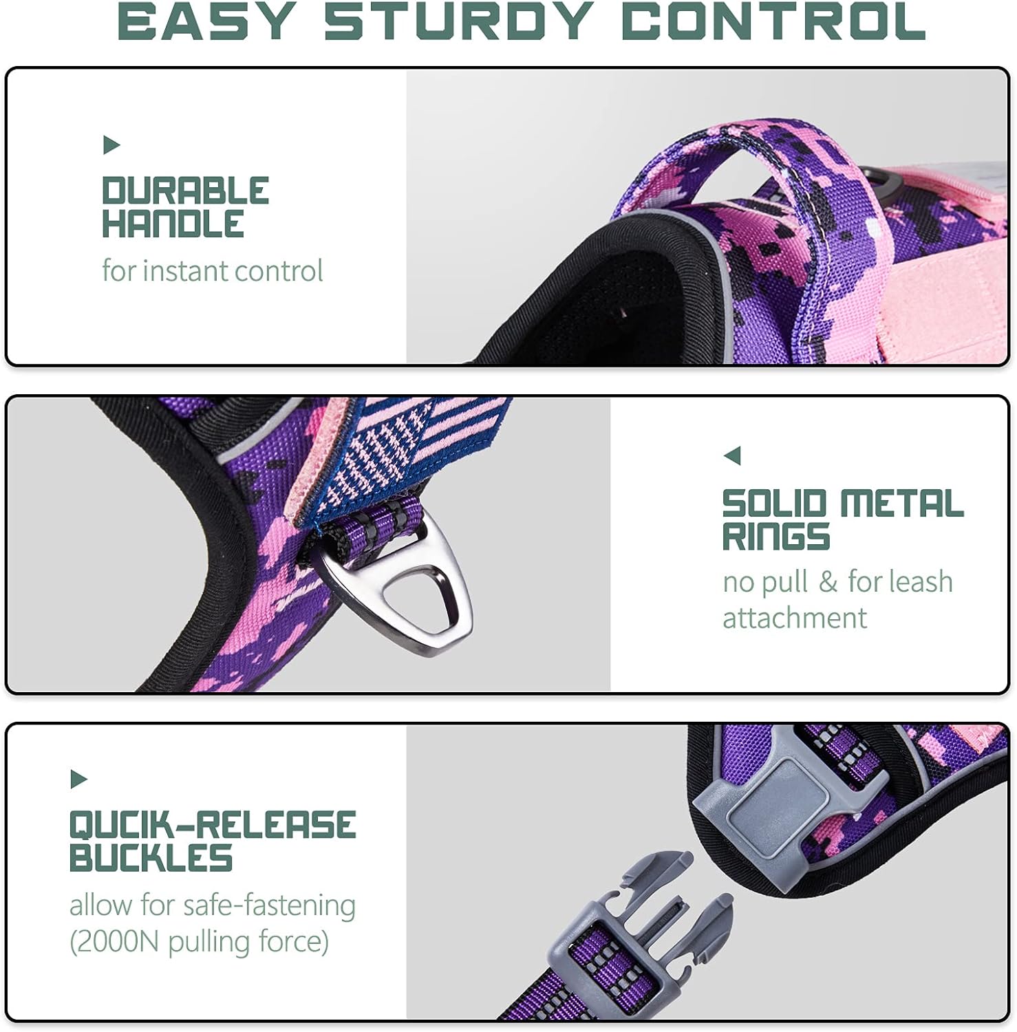 BUMBIN Tactical Dog Harness for Small Dogs No Pull, Famous TIK Tok No Pull Puppy Harness, Fit Smart Reflective Pet Walking Harness for Training, Adjustable Dog Vest Harness with Handle Purple Camo S