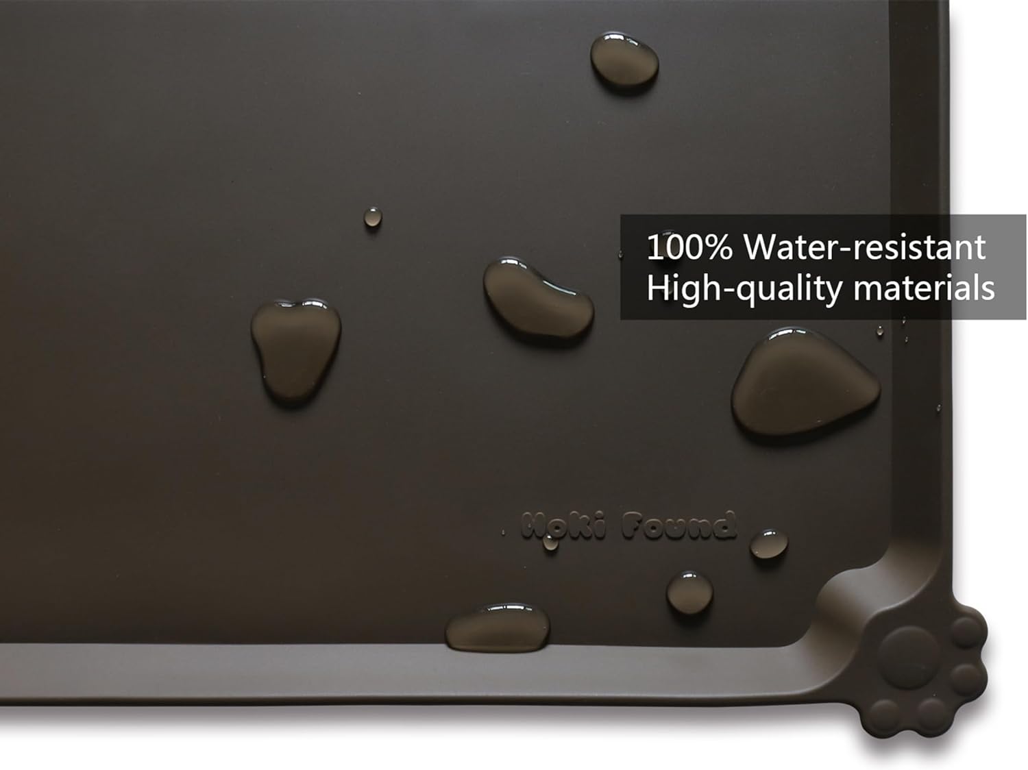 Hoki Found L Silicone Pet Food Mats Tray - Non Slip Dog Cat Bowl Mats Placemat - Pet Feeding Mat - Waterproof Dog Cat Food Mats -Pet Water Mats for Carpet - Coffee
