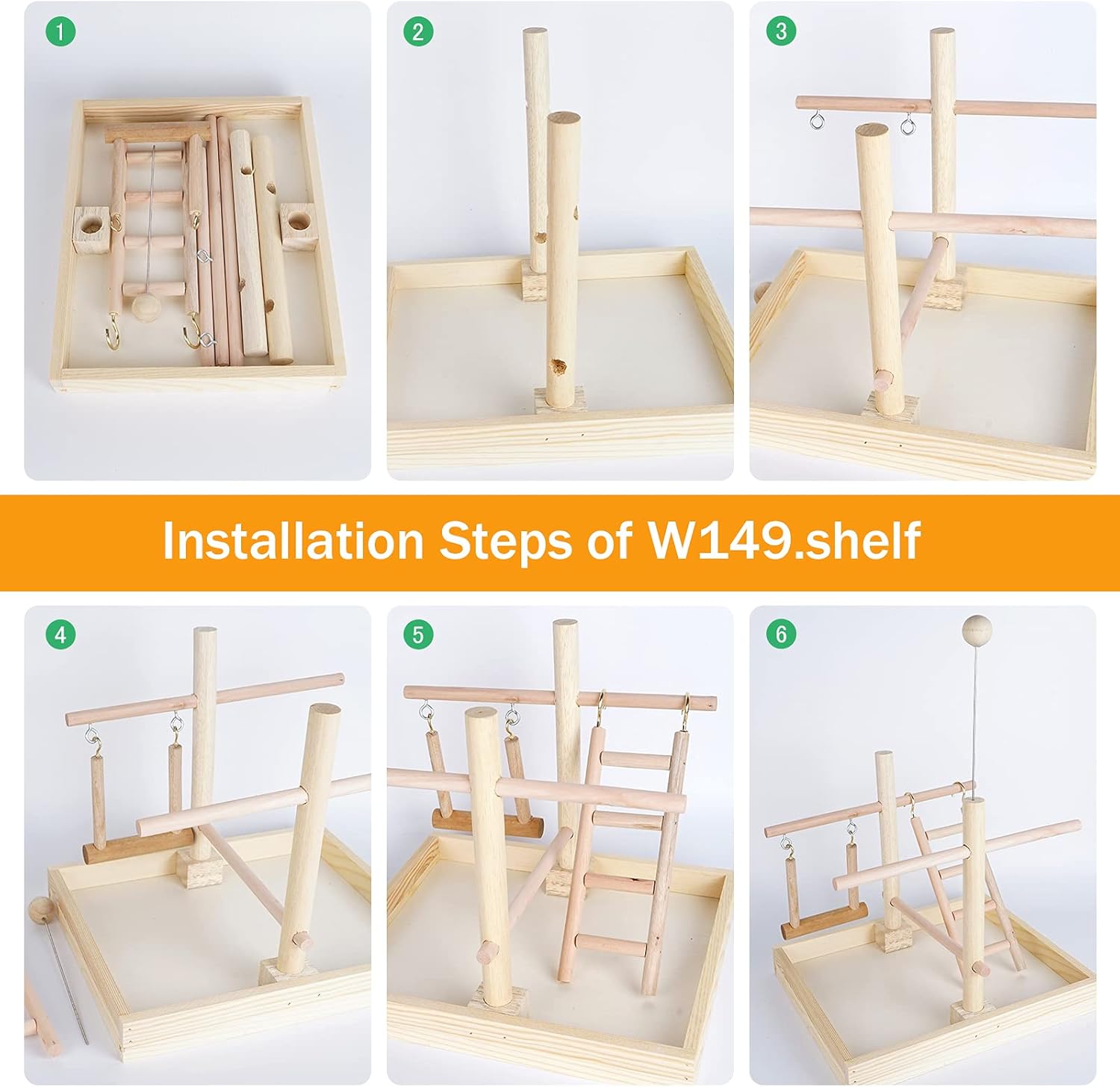 - 【Wooden Durable in Use】Bird perch is made from natural wood, and all the parts are connected with screws, not glue, no any toxic materials, just keep natural and original. More sturdy and more stable, great for chewing playing and gnawed.